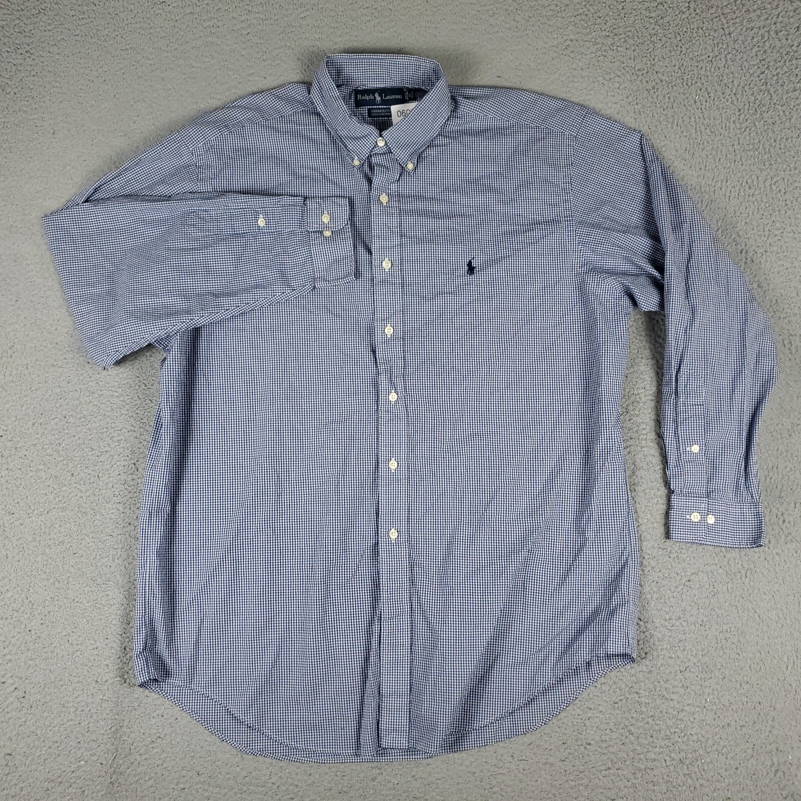 как выглядит Ralph Lauren Shirt Mens Size 17 Blue Check Pony Dress Button Up Long Sleeve фото