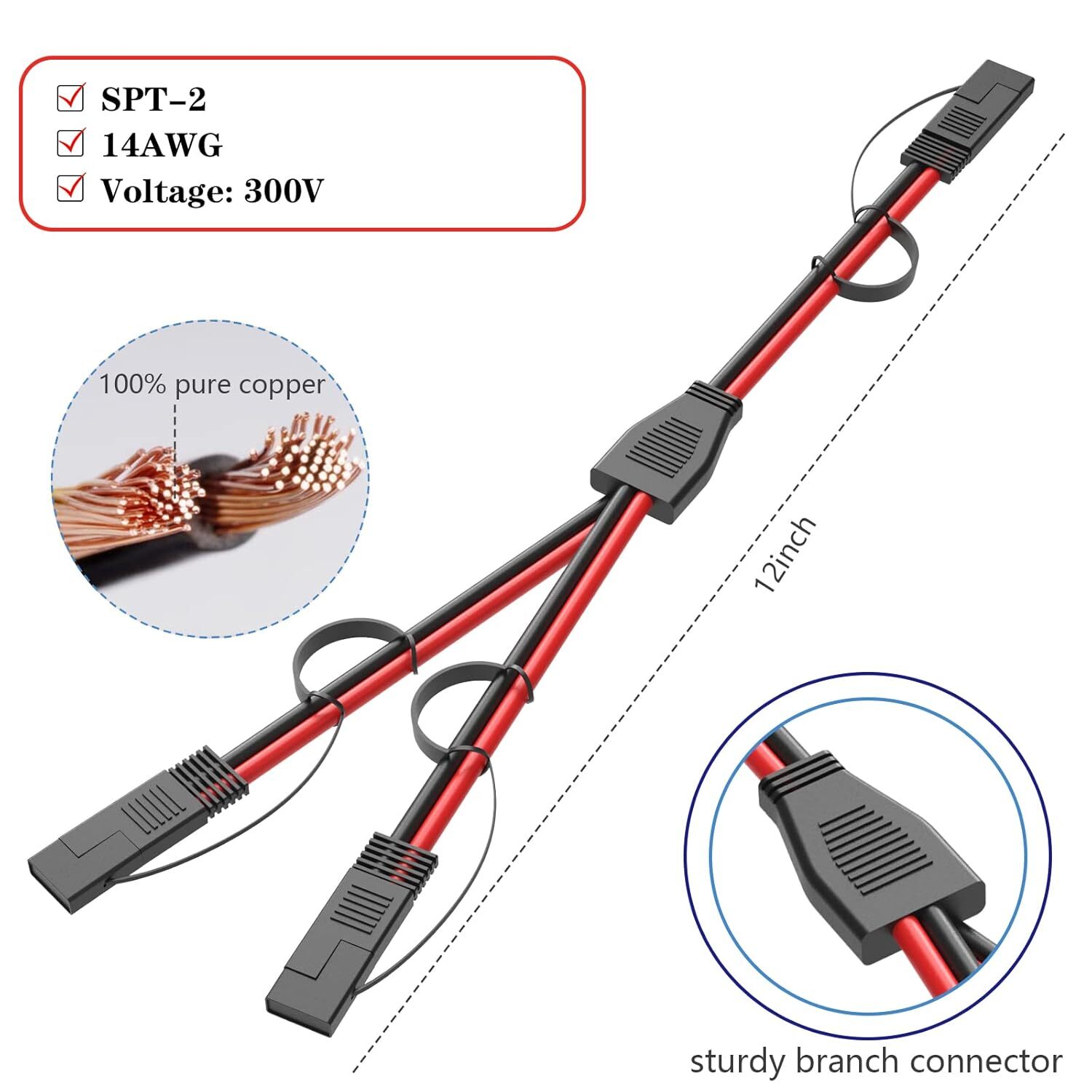 14AWG SAE Y Splitter Cable Quick Disconnect Connector, DC Power...