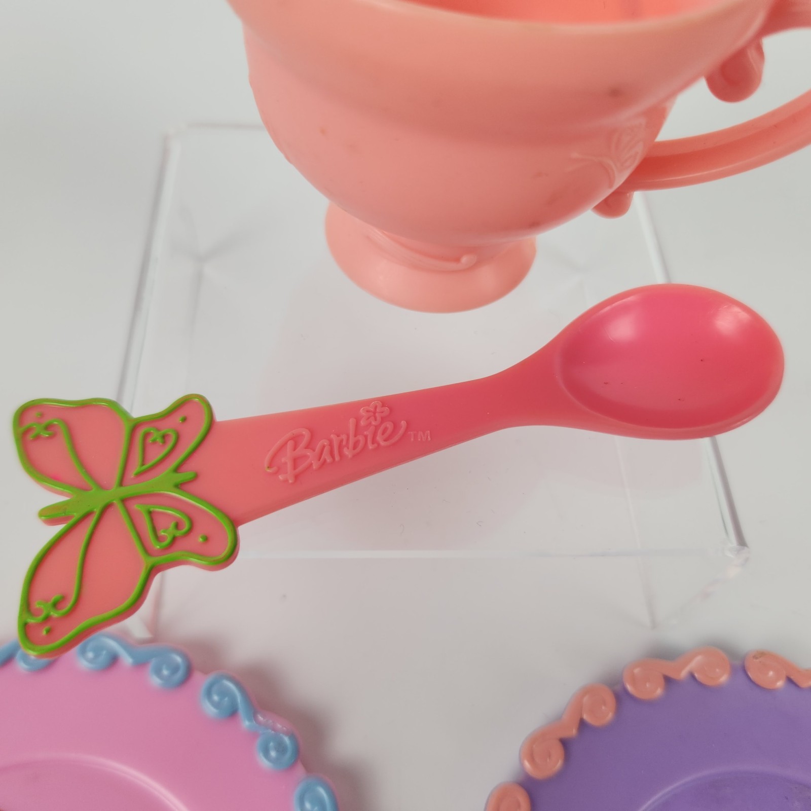 как выглядит CDI PLAY DISHES BARBIE Kitchen Plastic Plates Spoons Cup Flower Design Tea Party фото