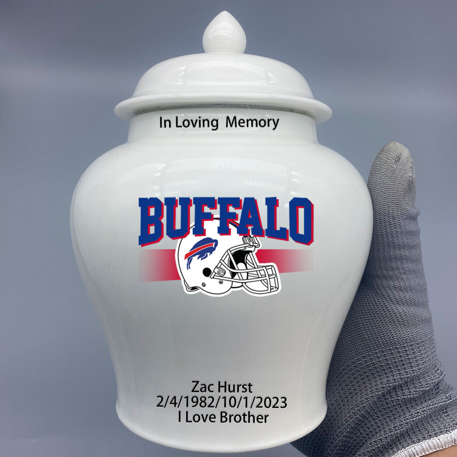 Ceramic Football Urn Buffalo Bills Theme, Custom Text Number