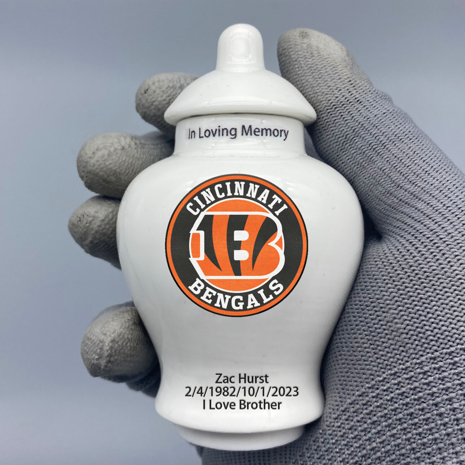 Ceramic Football Urn Cincinnati Bengals Theme, Custom Text Number