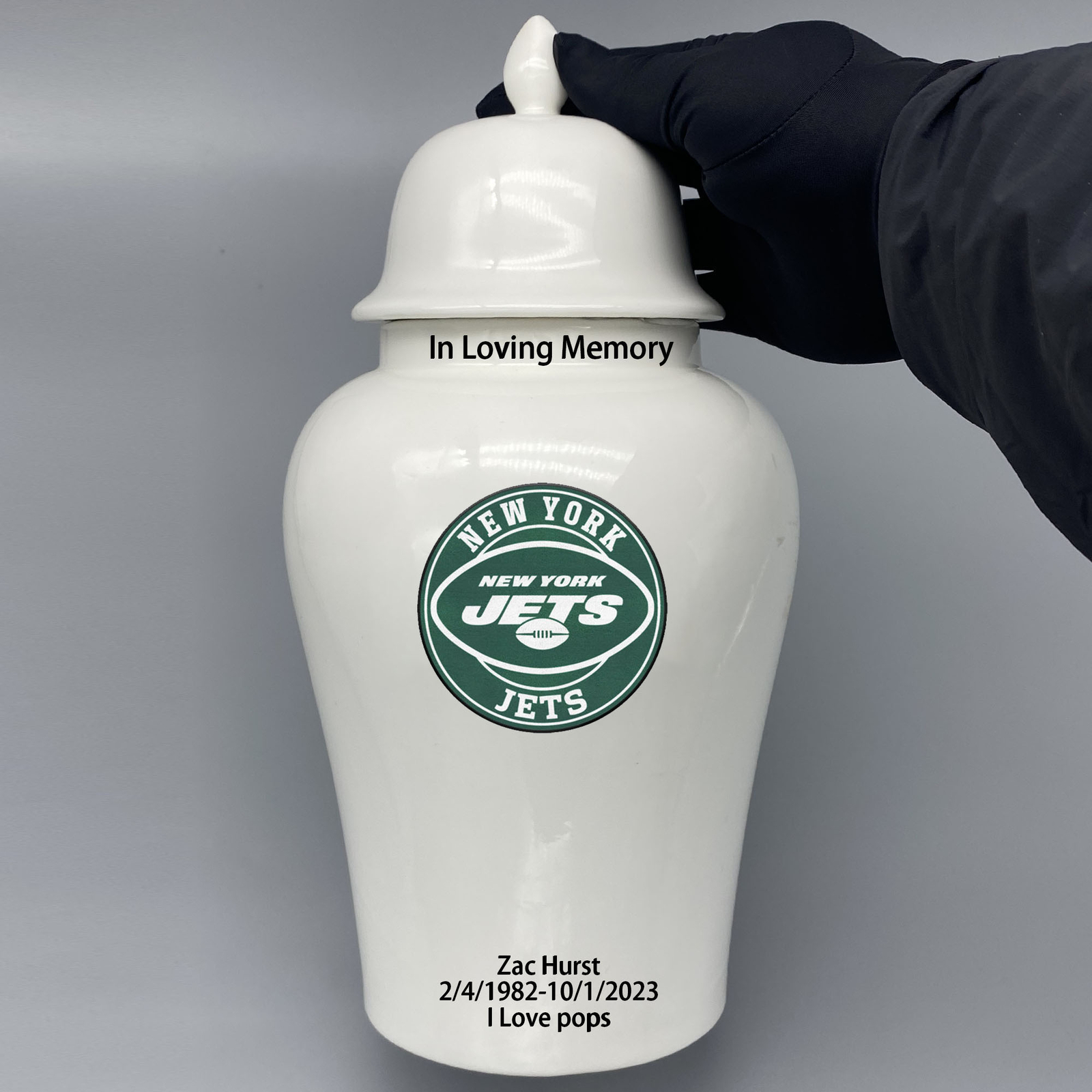 Ceramic Football Urn New York Jets Theme, Custom Text Number
