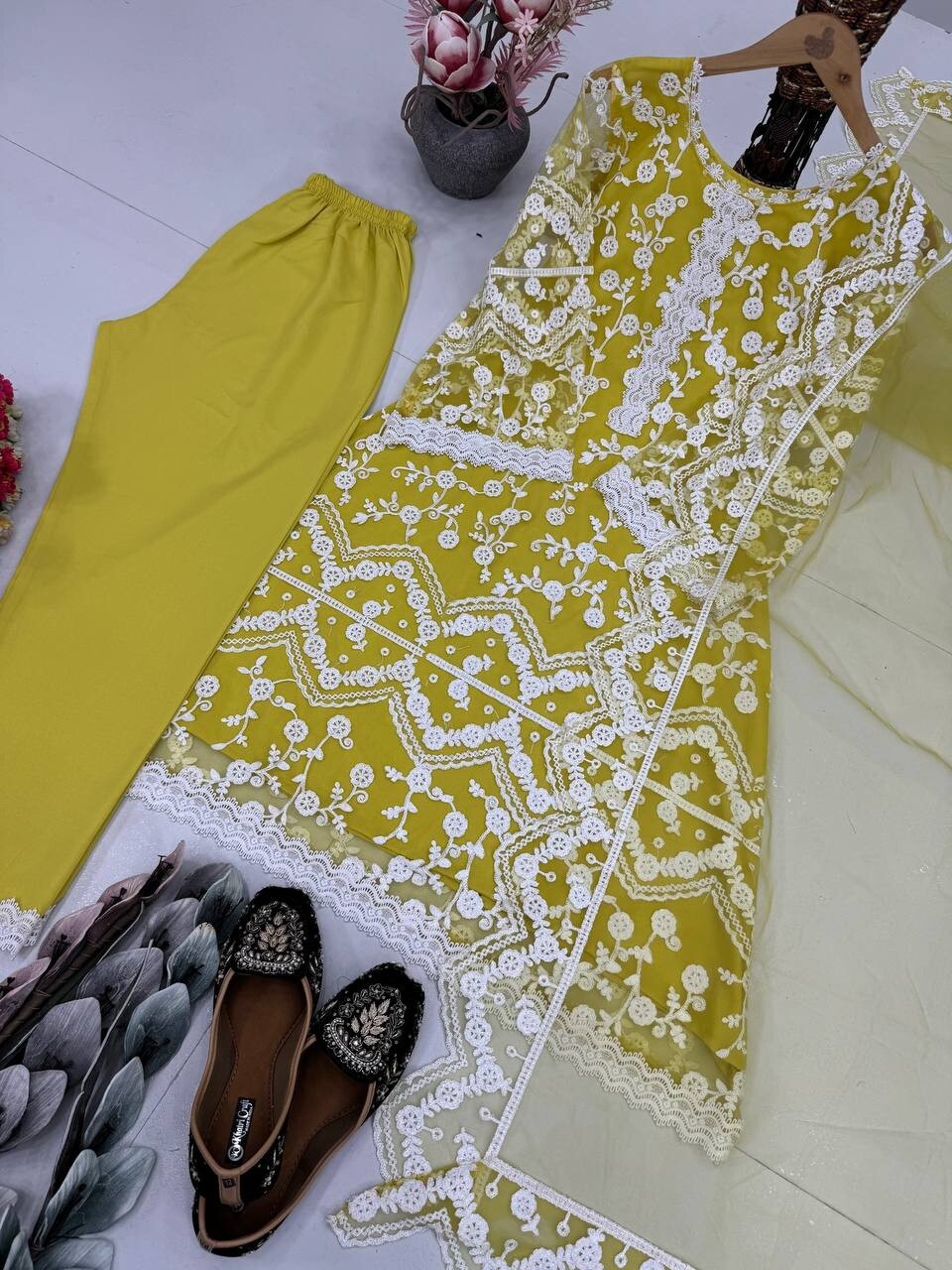 как выглядит New Fancy Heavy Soft Net Salwar Kameez And Yellow Dupatta For Festival Wear фото
