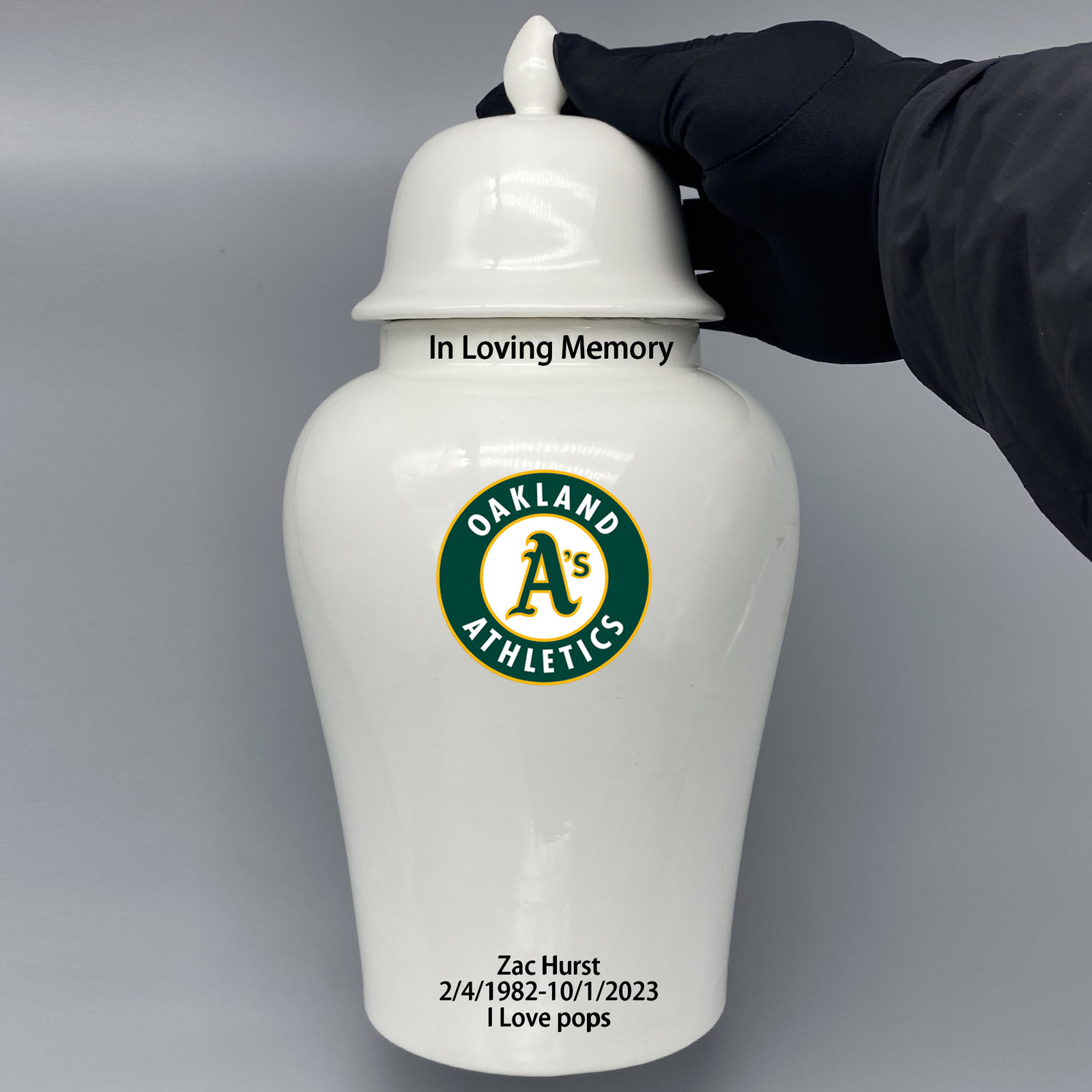 Ceramic Baseball Urn Oakland Athletics Theme, Custom Text Number