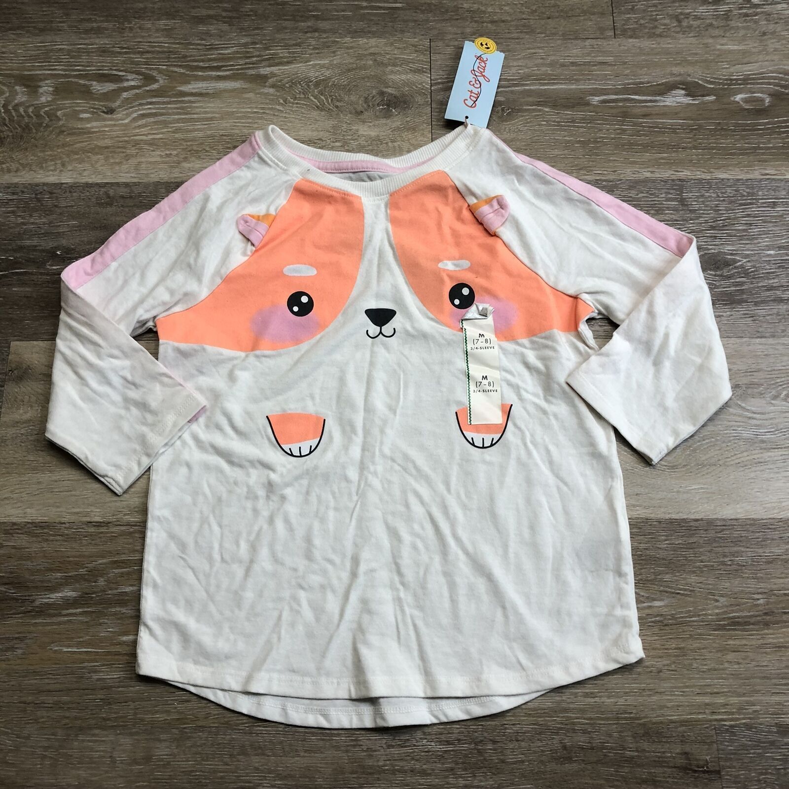 NEW CAT JACK Crewneck 3/4 Sleeves White Dog Print Shirt Girl's Size M 7-8