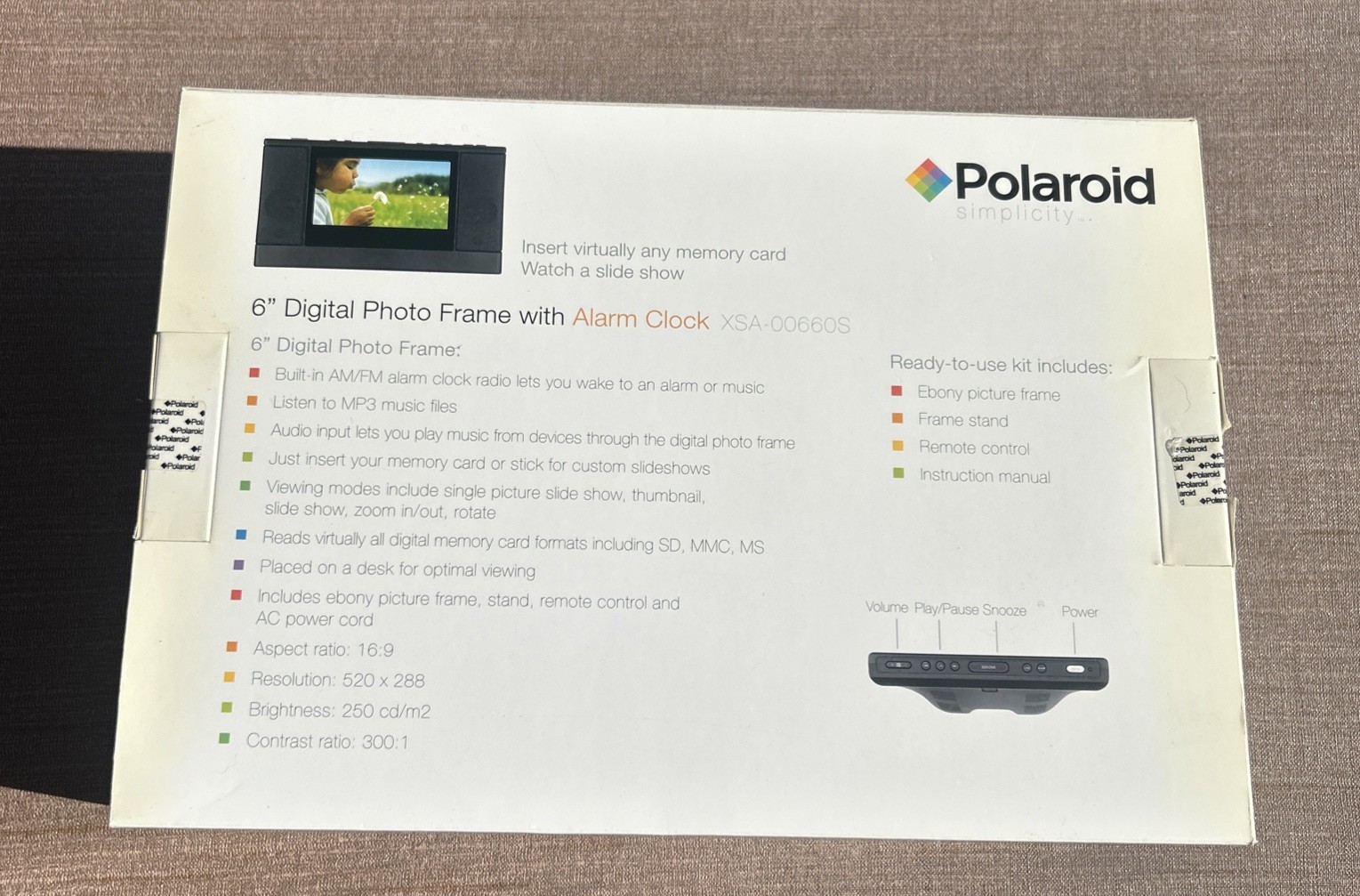 Polaroid 6 Digital Picture Frame Black Alarm Clock XSA-00660S New in Open Box
