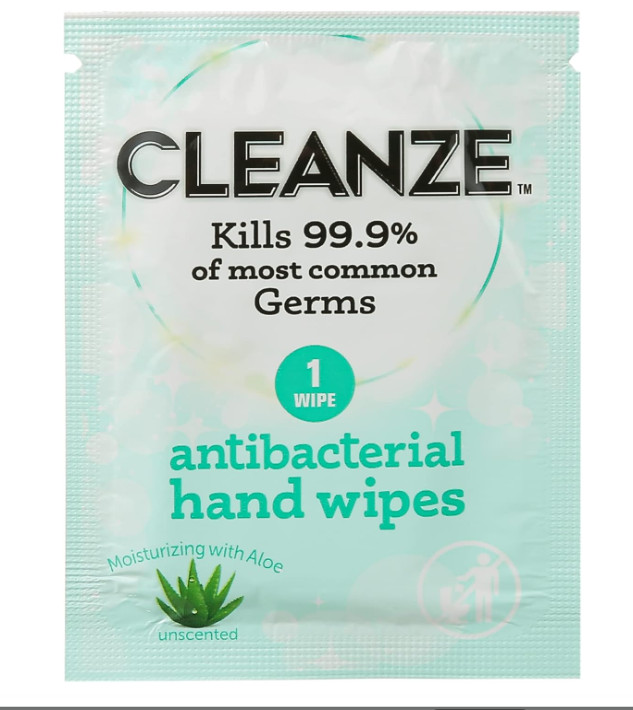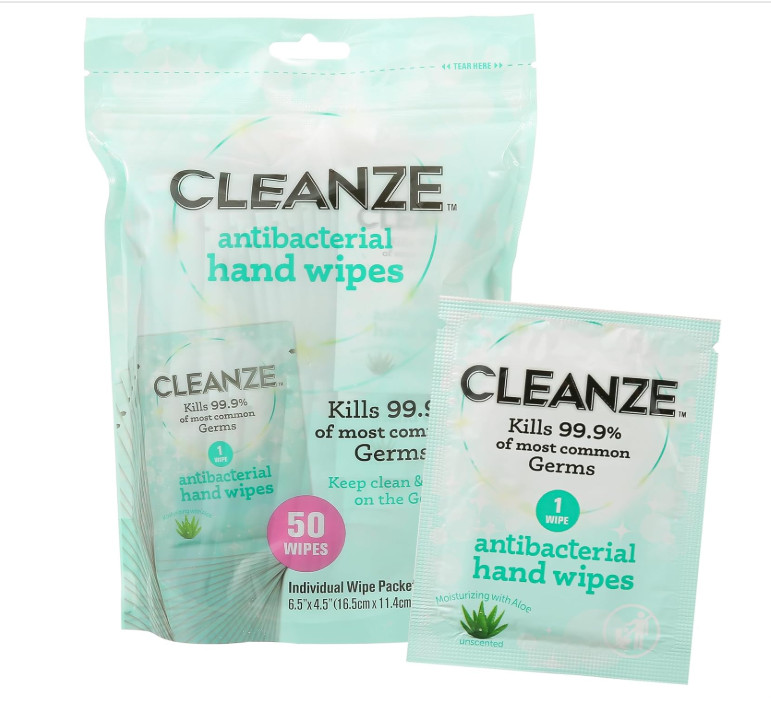Cleanze Antibacterial Hand Sanitizing Hand Wipes Individual Hand Wipe Packets,