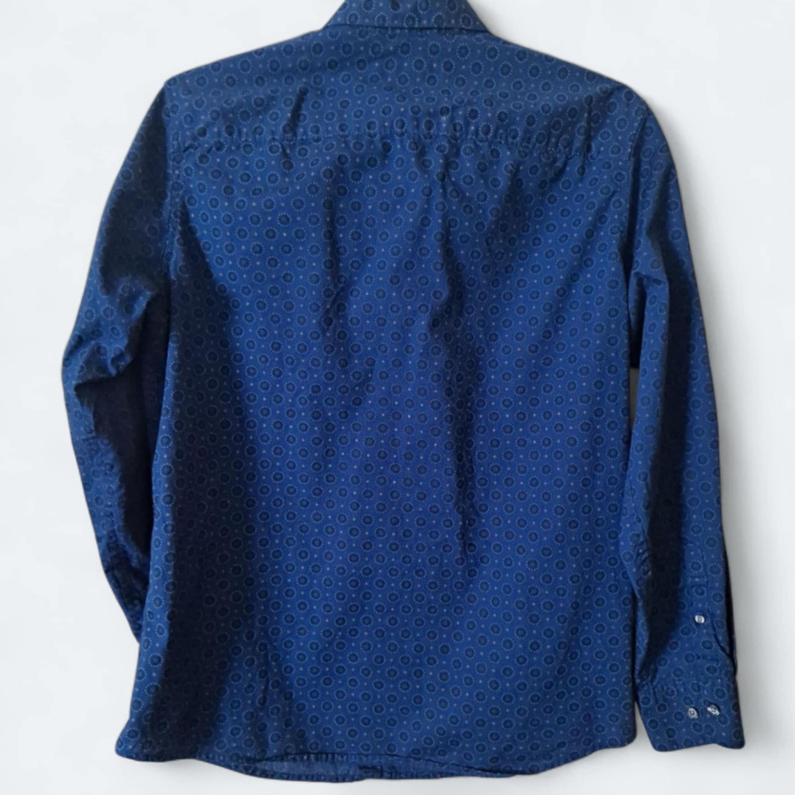 как выглядит Claiborne Men s Long Sleeve Dress Shirt Medium Dark Blue Polka Dots фото