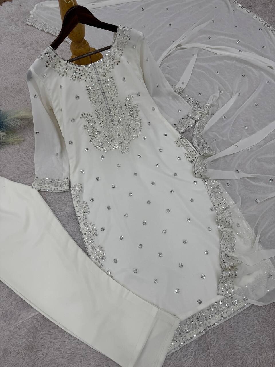 как выглядит Latest New Faux Georgette White Salwar Kameez And Dupatta For Indian Party фото