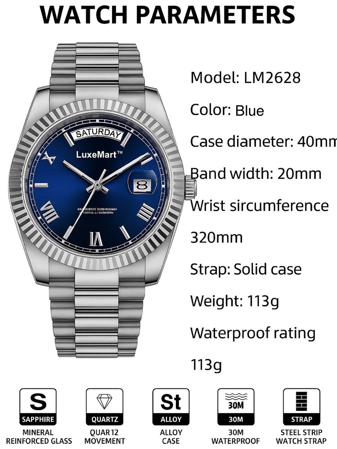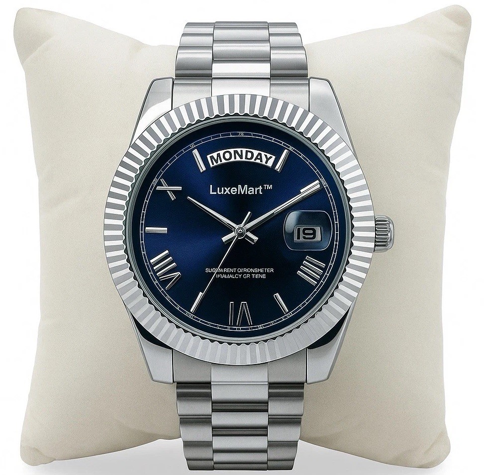 как выглядит Mens Silver Tone Blue Dial Watch Quartz Stainless Steel Waterproof  LuxeMart фото