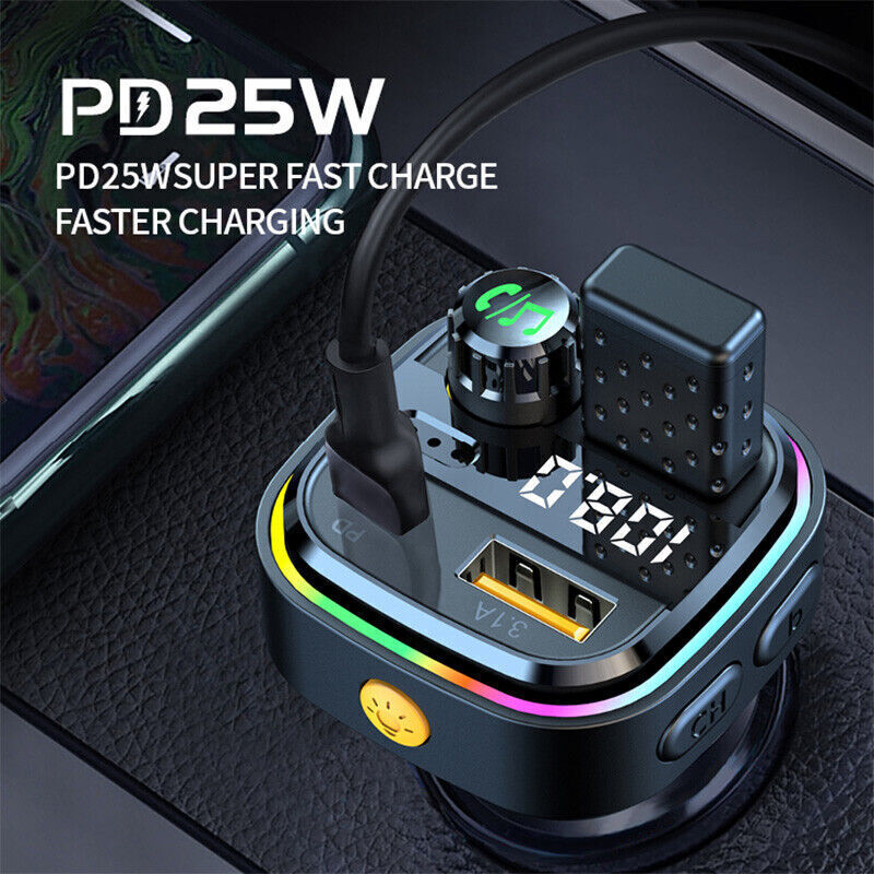 Universal Bluetooth 5.0 Car Wireless Adapter FM-Transmitter MP3 Radio USBCharger