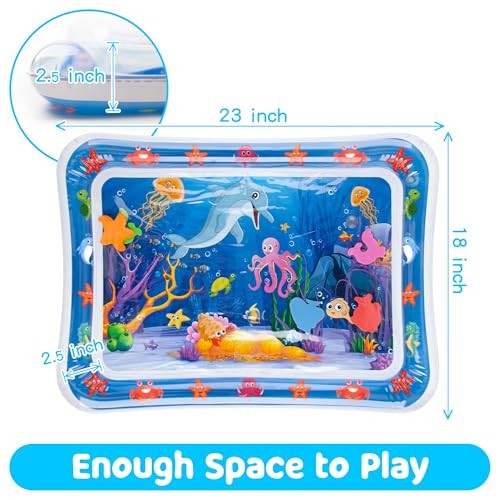 Tummy Time Water Mat Inflatable Tummy Time Water Play Mat for Babies, Blue