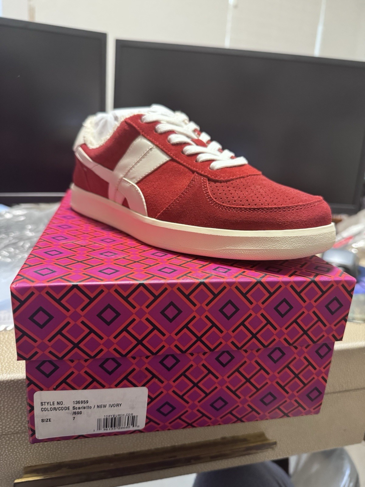 как выглядит Tory Burch Red Hank Court Sneakers фото