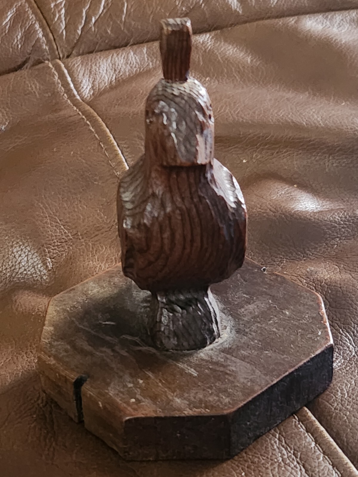 как выглядит Hand Carved Wood Folk Art Bird On Base фото