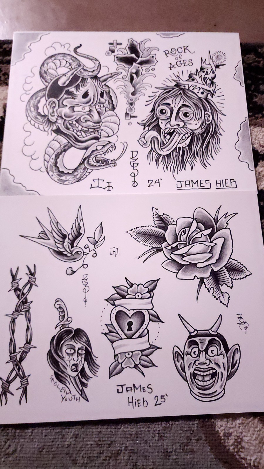 tattoo flash sheets original. 18 sheets original flash prints. Limited quantity.