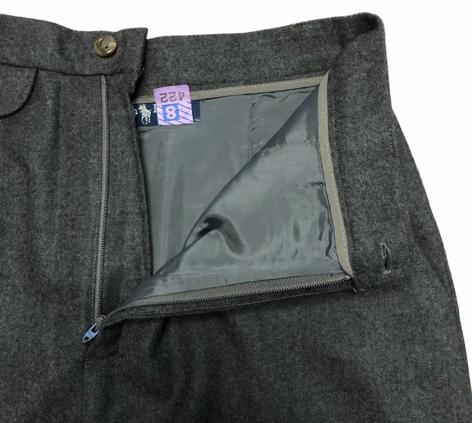 как выглядит vtg 90s RALPH LAUREN Blue Label Wool Midi Skirt Sz 6 Gray Lined USA фото