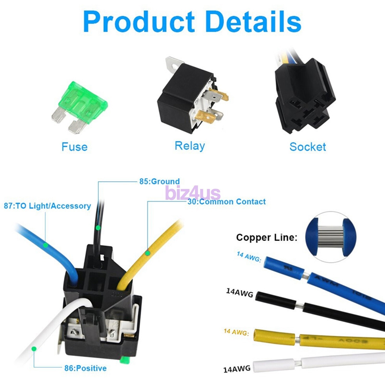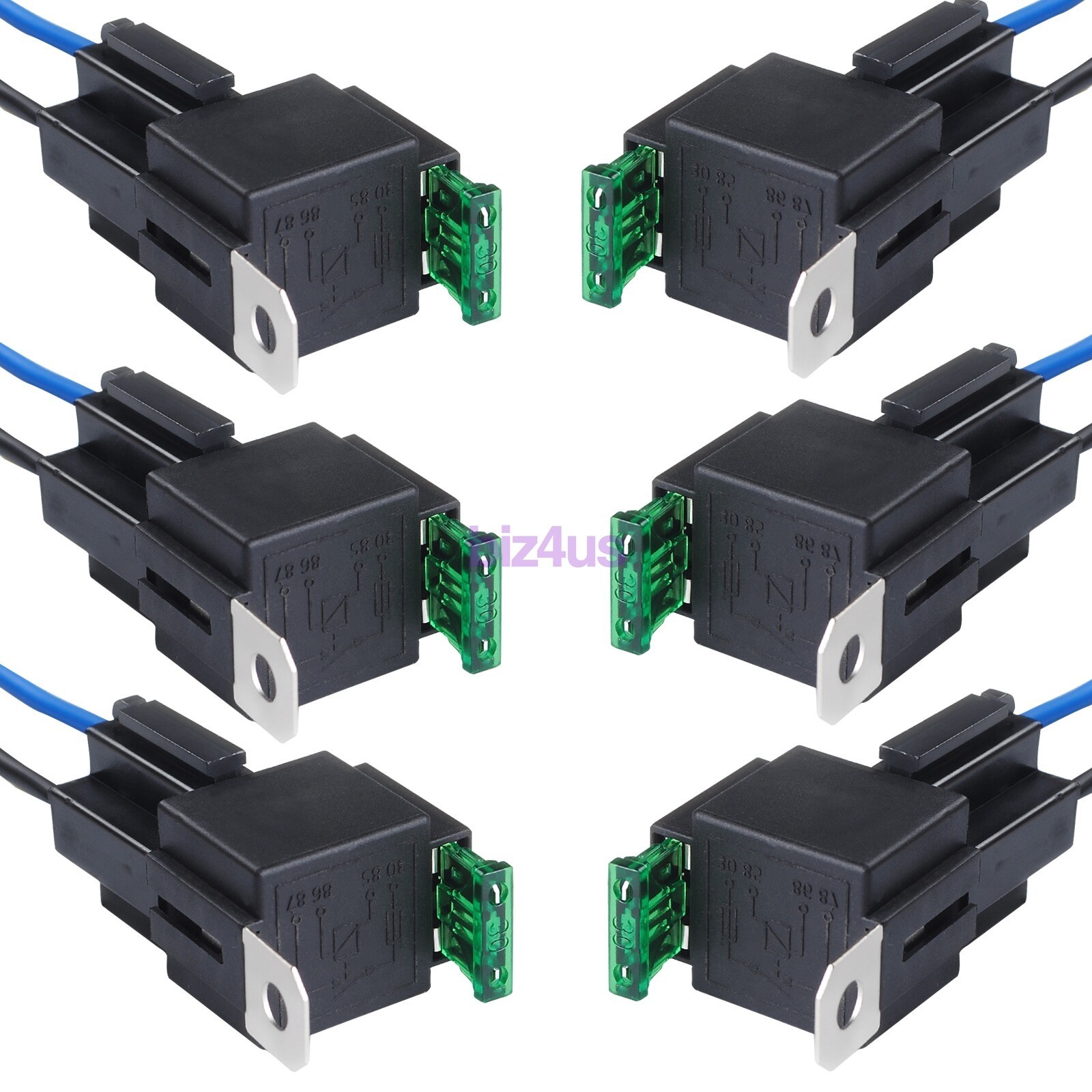 6 Pack 12V DC 30 Amp 4-Pin Automotive Relay Harness Set Switch Fuse US