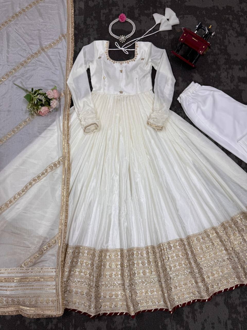 как выглядит Latest Party Wear White Chinon Silk Salwar Kameez with Dupatta For Women фото