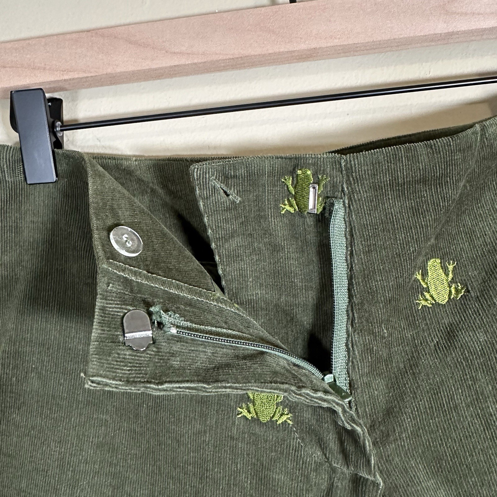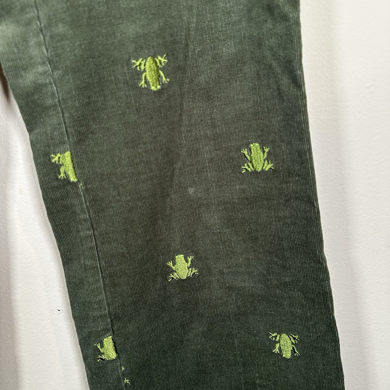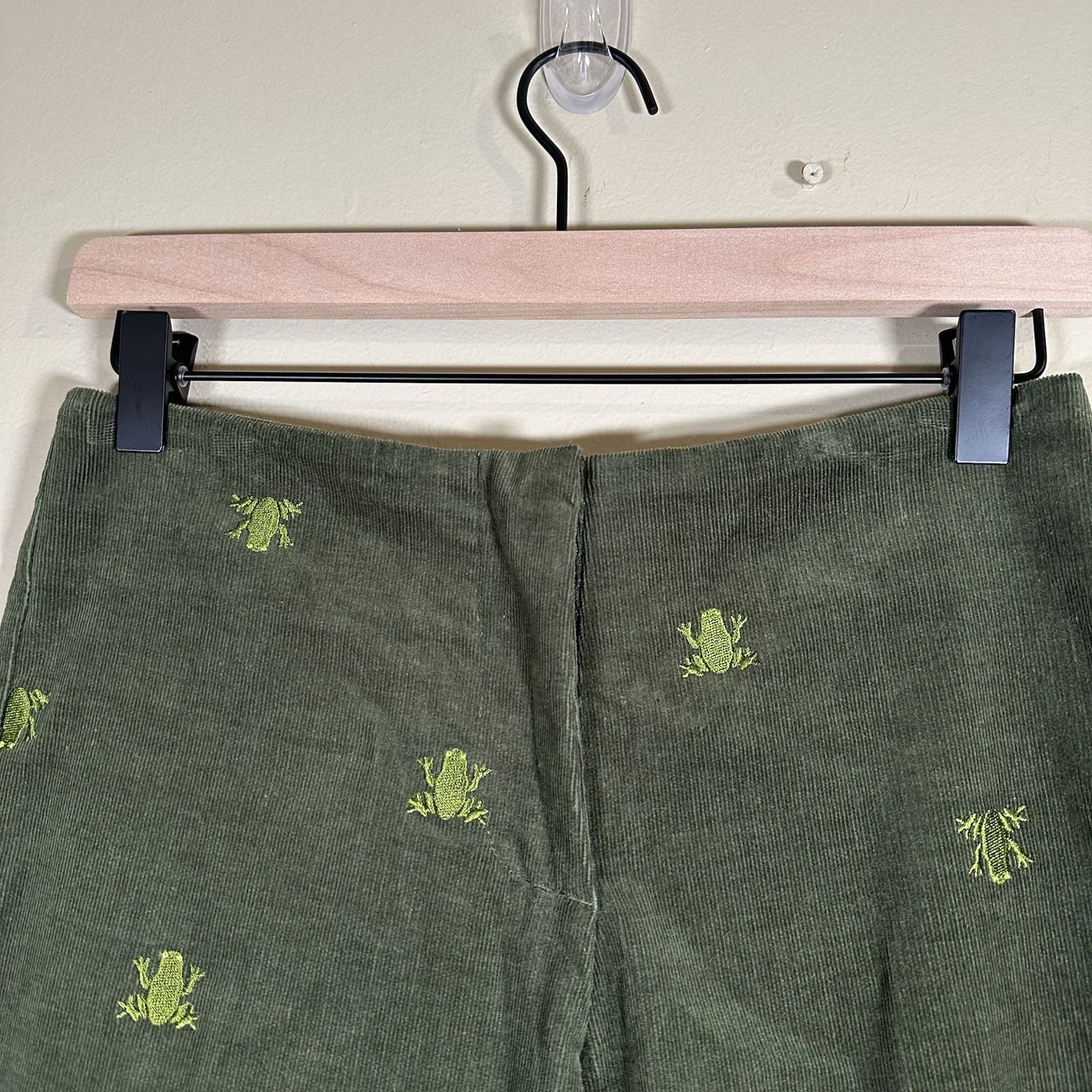 Vintage Lilly Pulitzer Green Corduroy Frog Embroidered Pants Woman s 0 Preppy