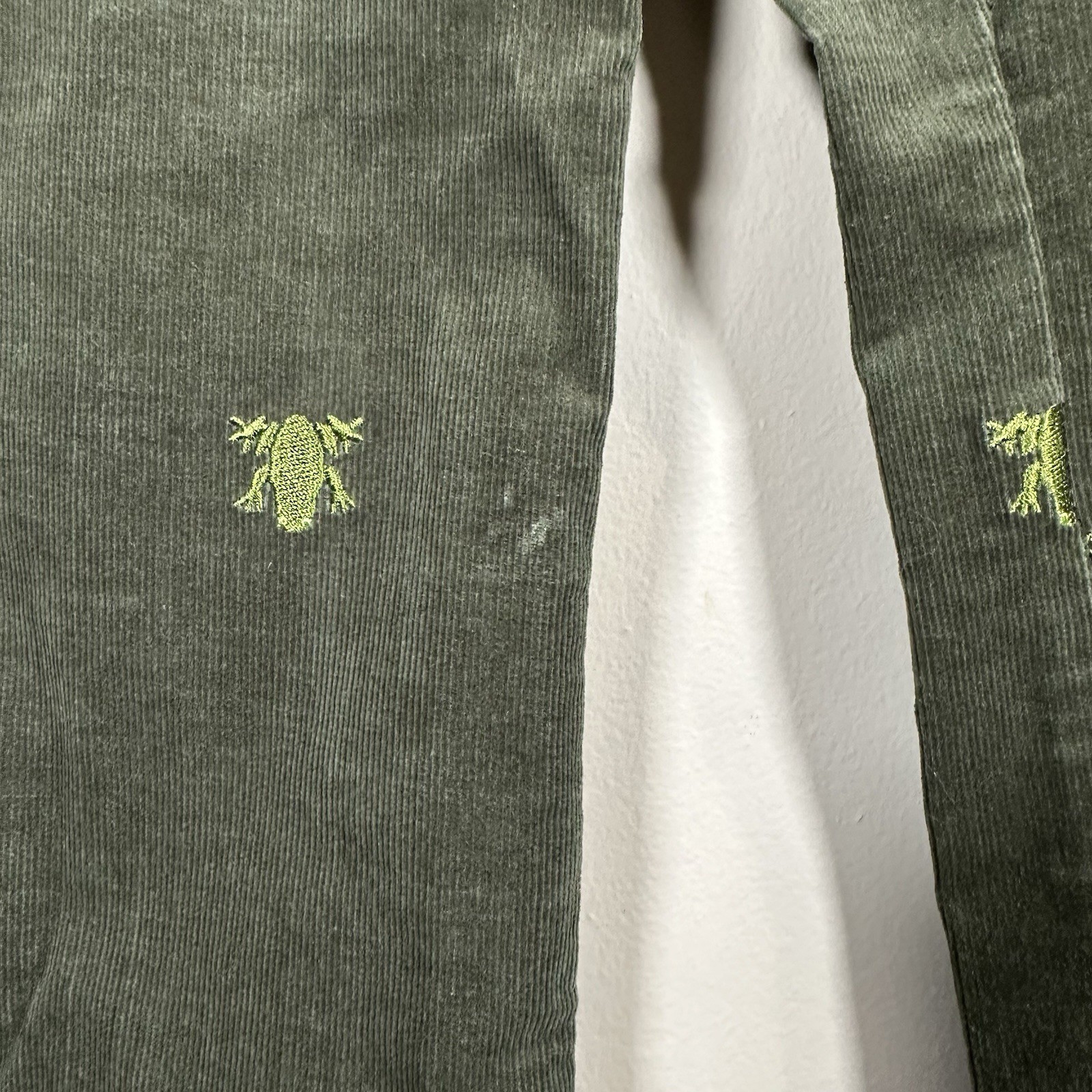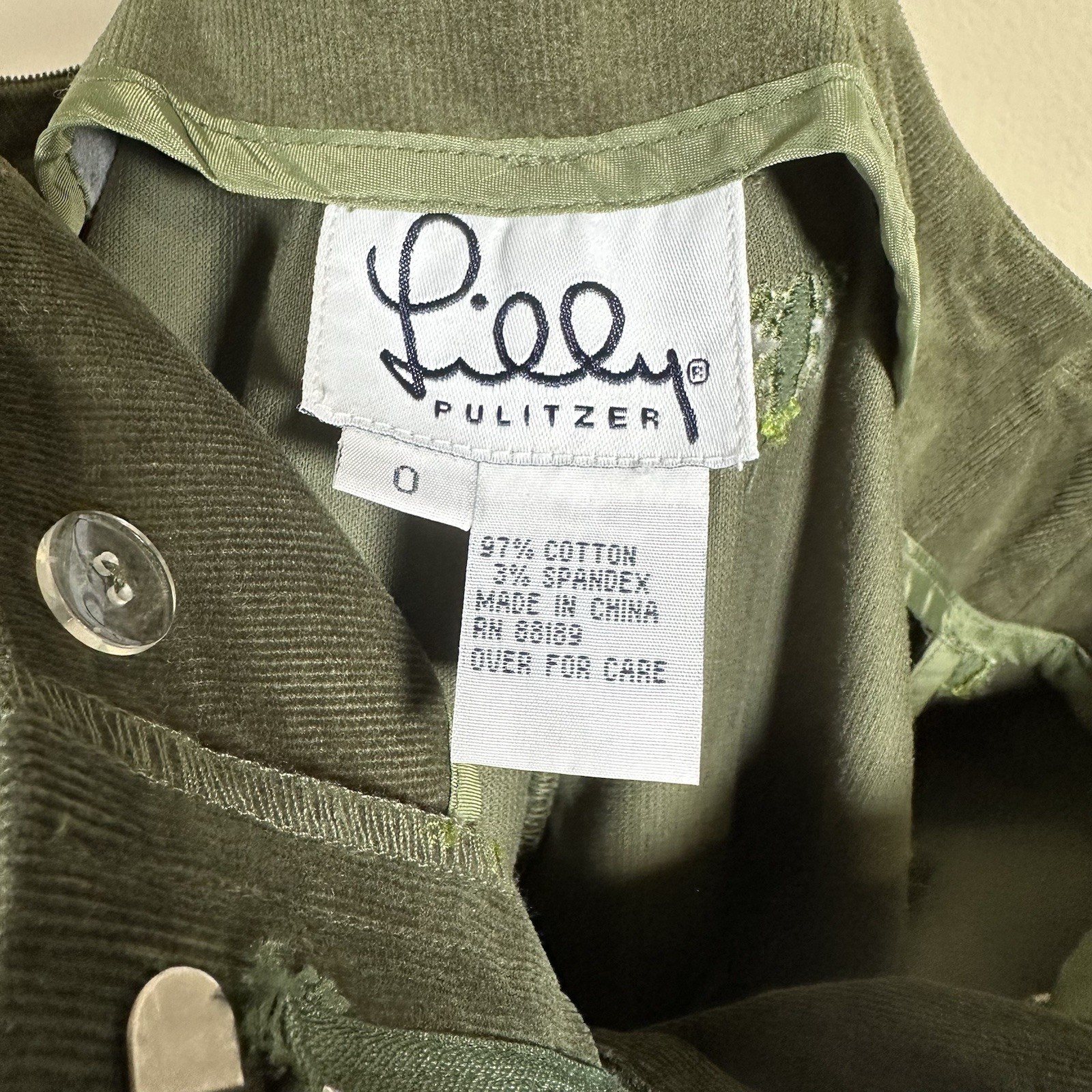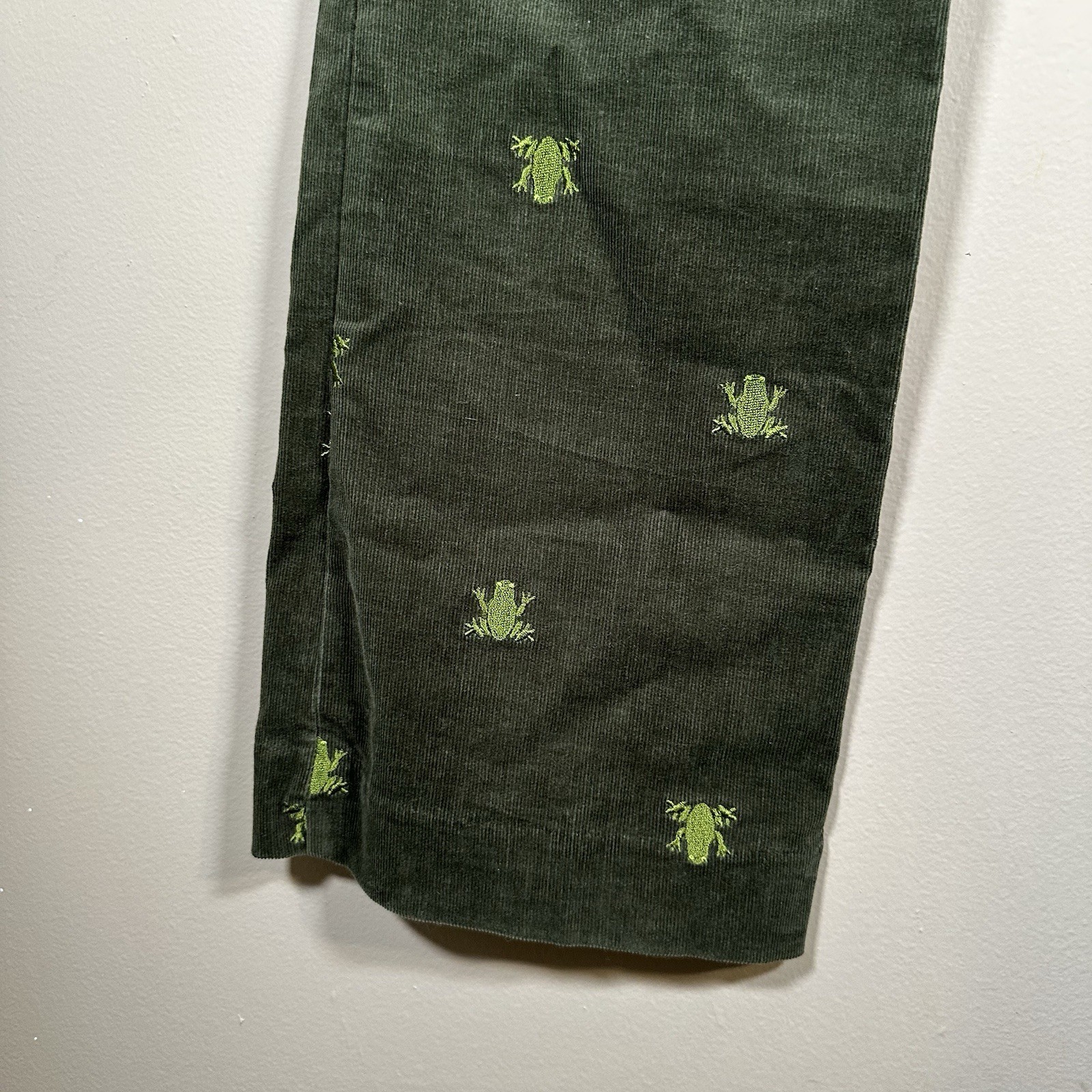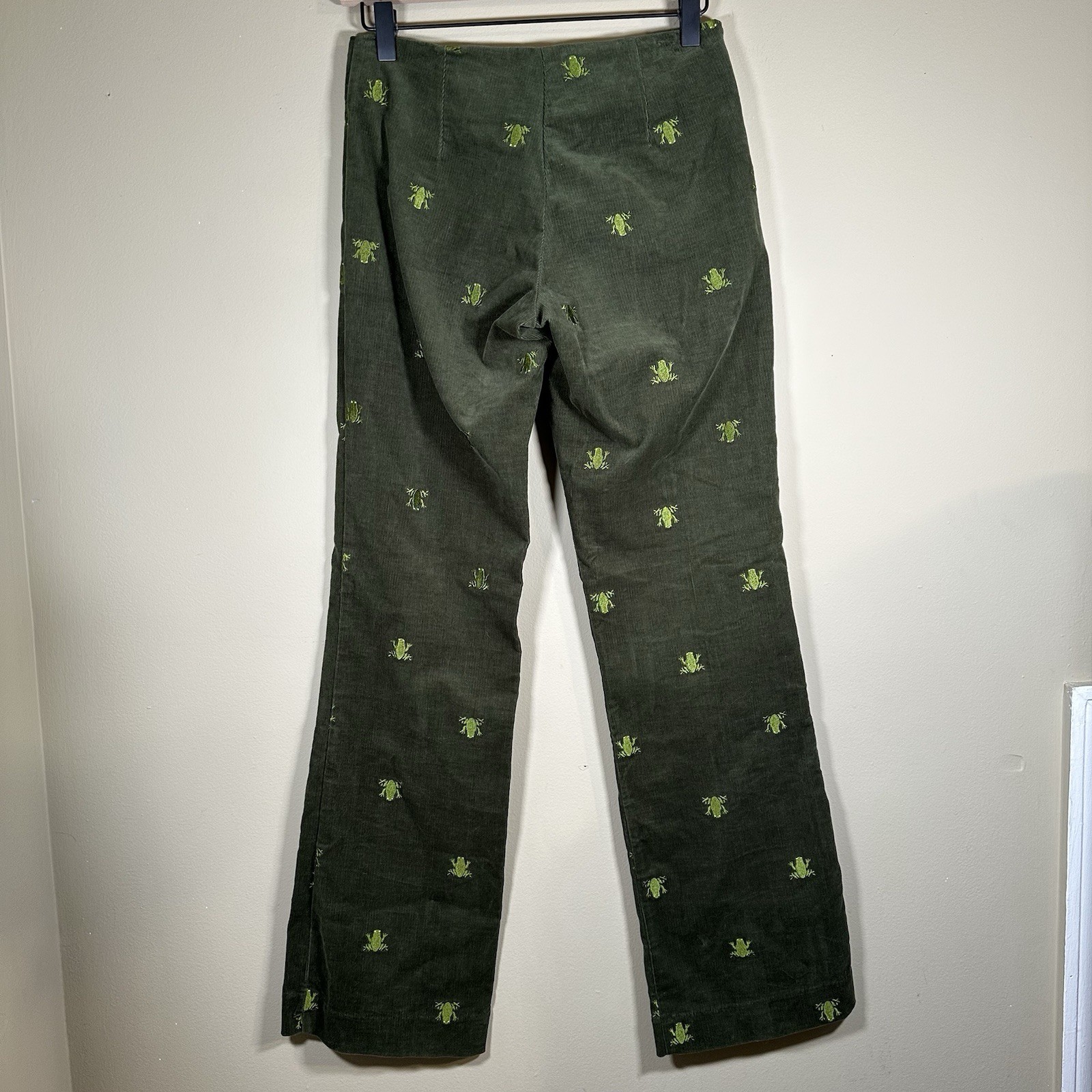 Vintage Lilly Pulitzer Green Corduroy Frog Embroidered Pants Woman s 0 Preppy