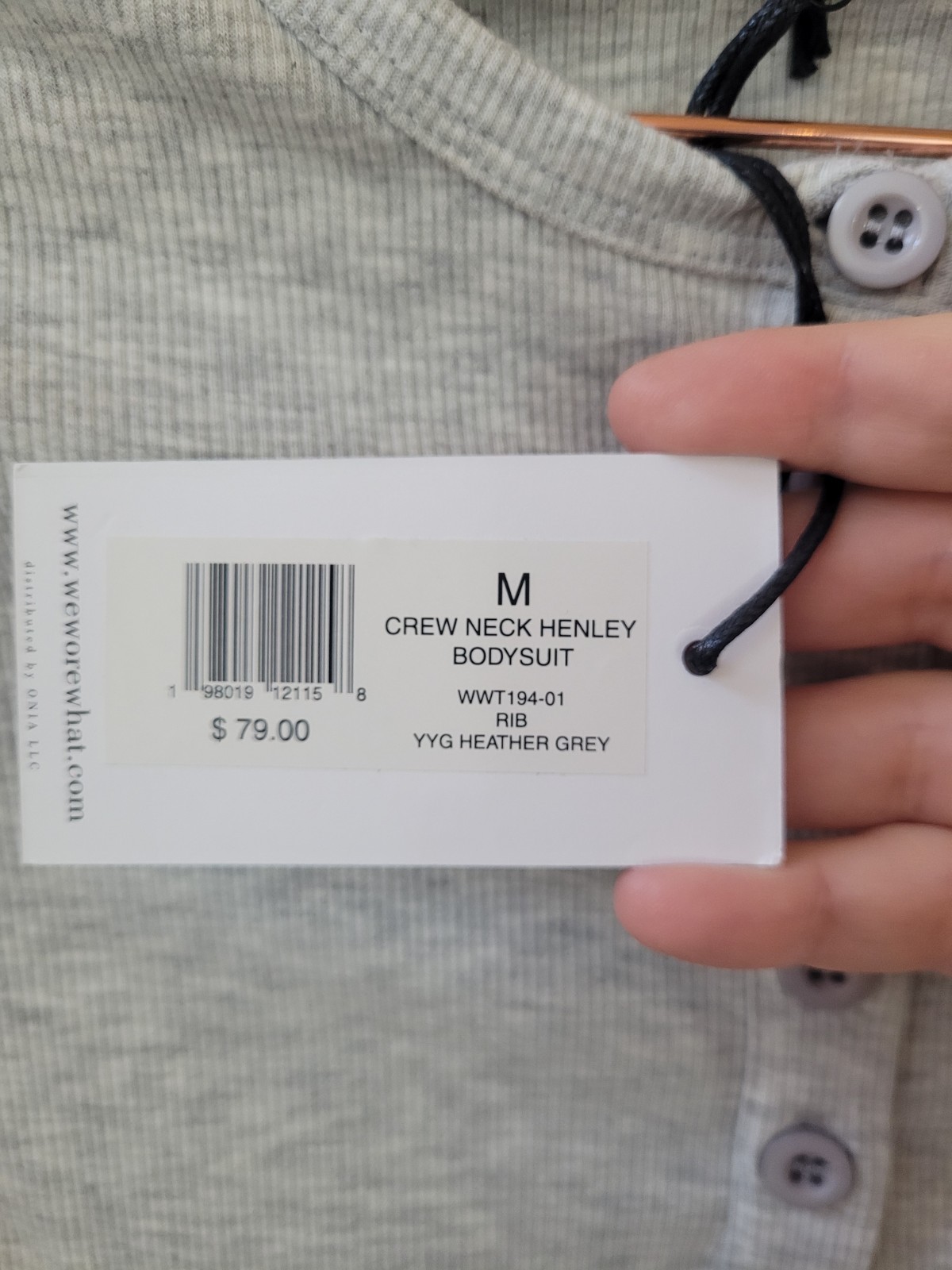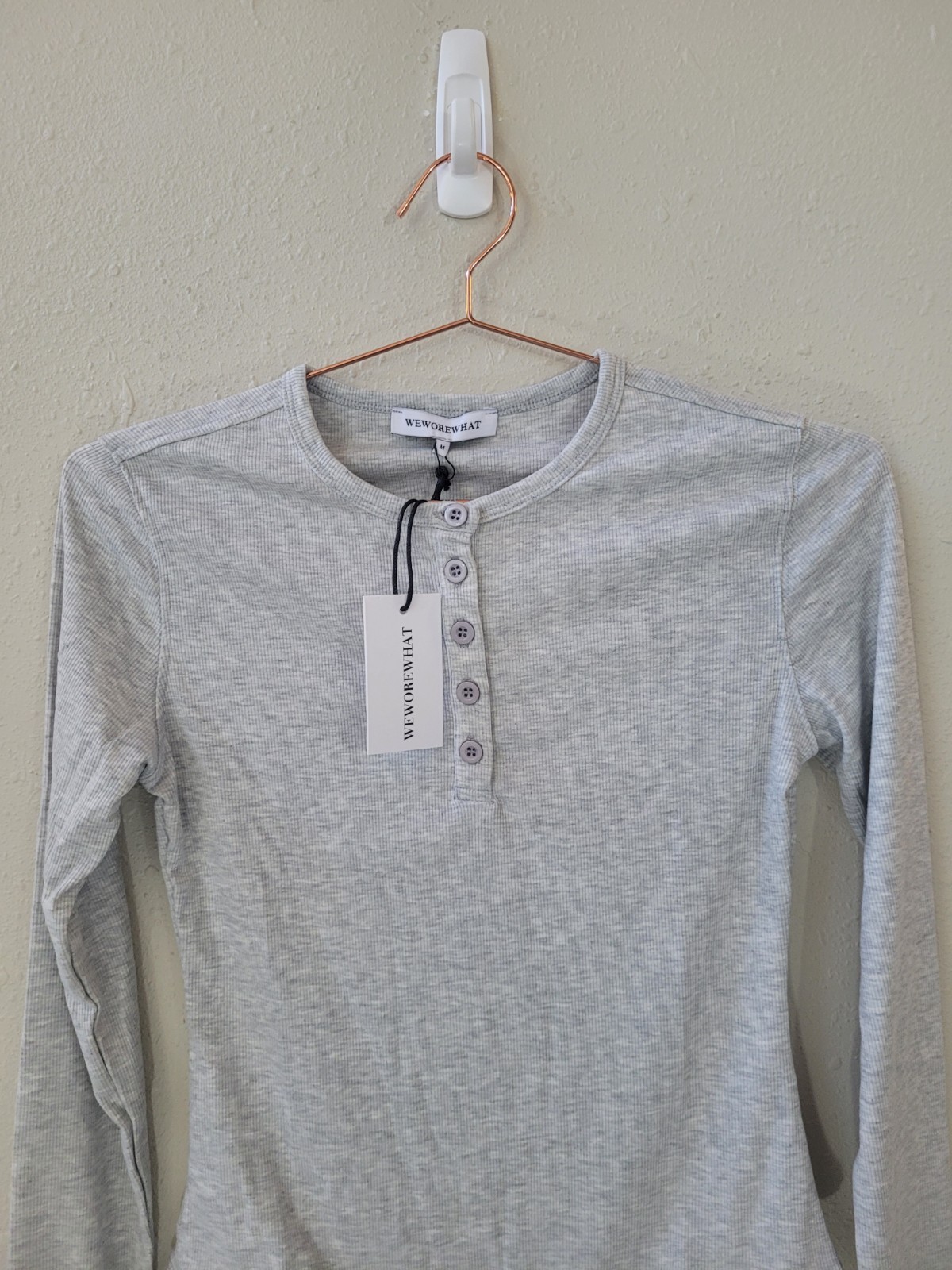 как выглядит New WEWOREWHAT M Heather Grey Crew Neck Henley Rib Bodysuit Women фото