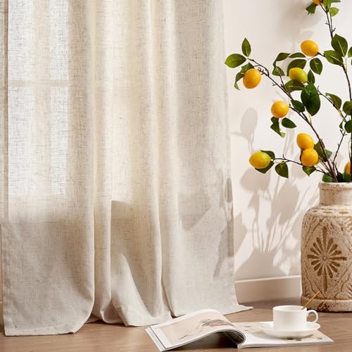 Linen Curtains 96 Inch Length 2 Panels Set Light 50W x 96L Pack of 2 Ecru