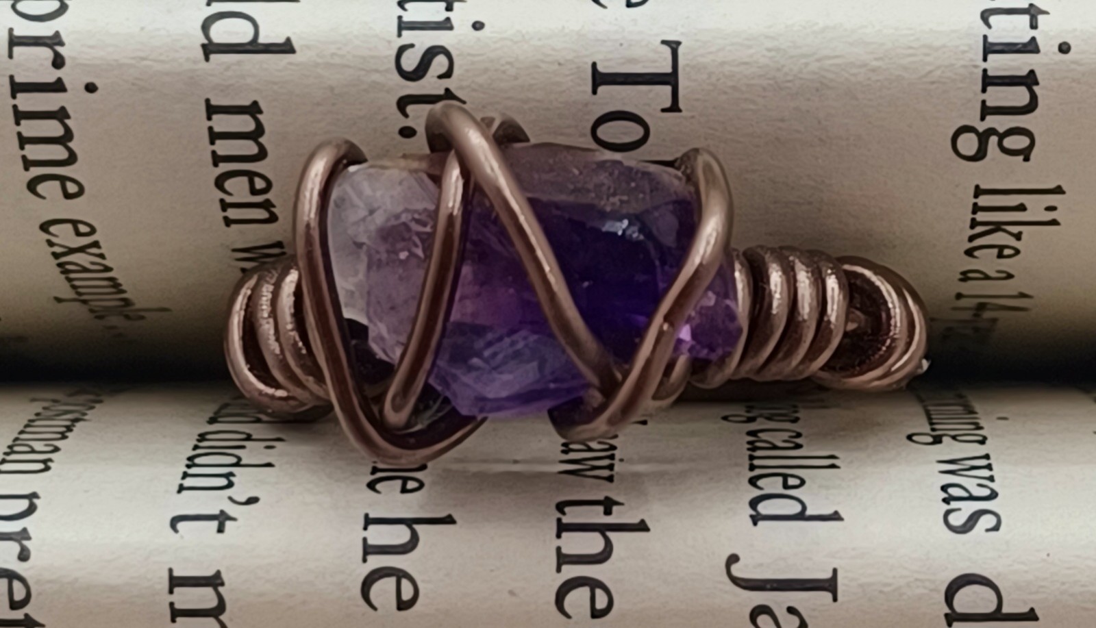 как выглядит Handcrafted Wire-wrapped Raw Amethyst Ring, Size 5, Dark Silver Colored Wire фото