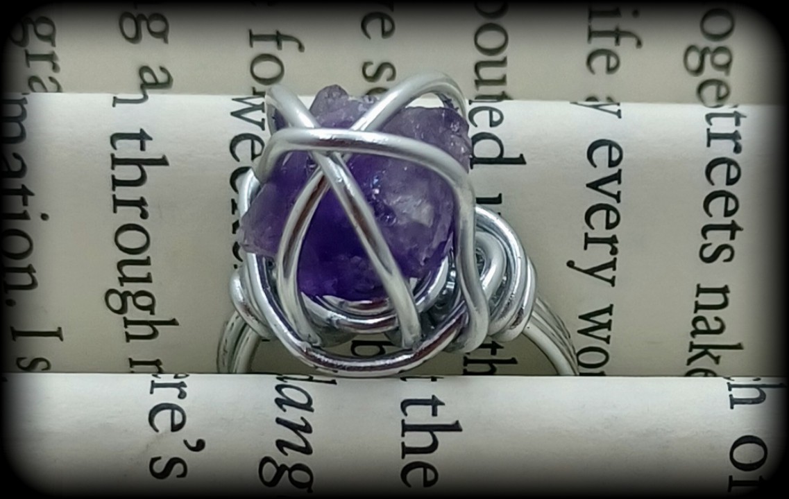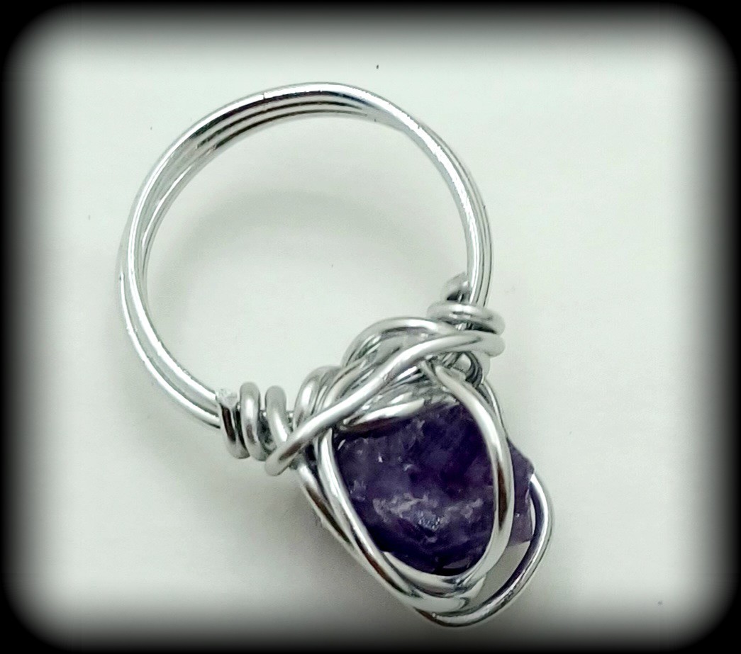 Handcrafted Wire Wrapped Raw Amethyst Ring, Size 5, Silver Colored Wire
