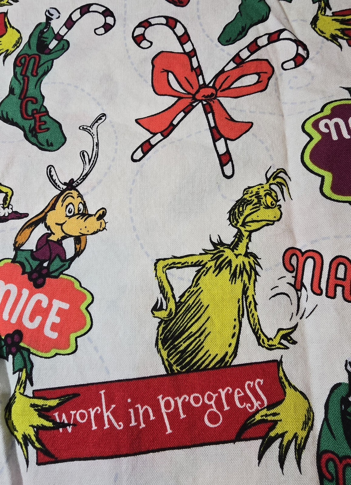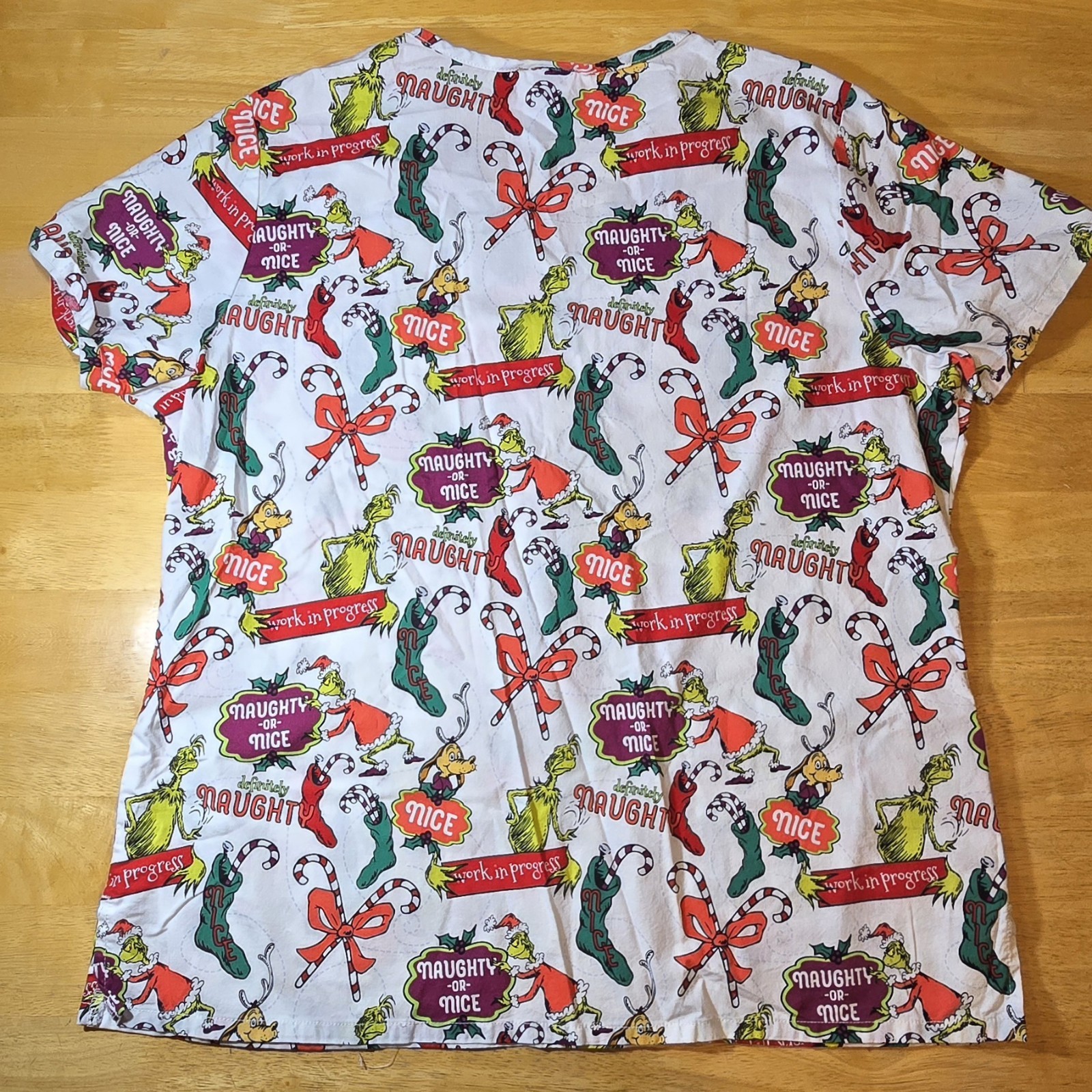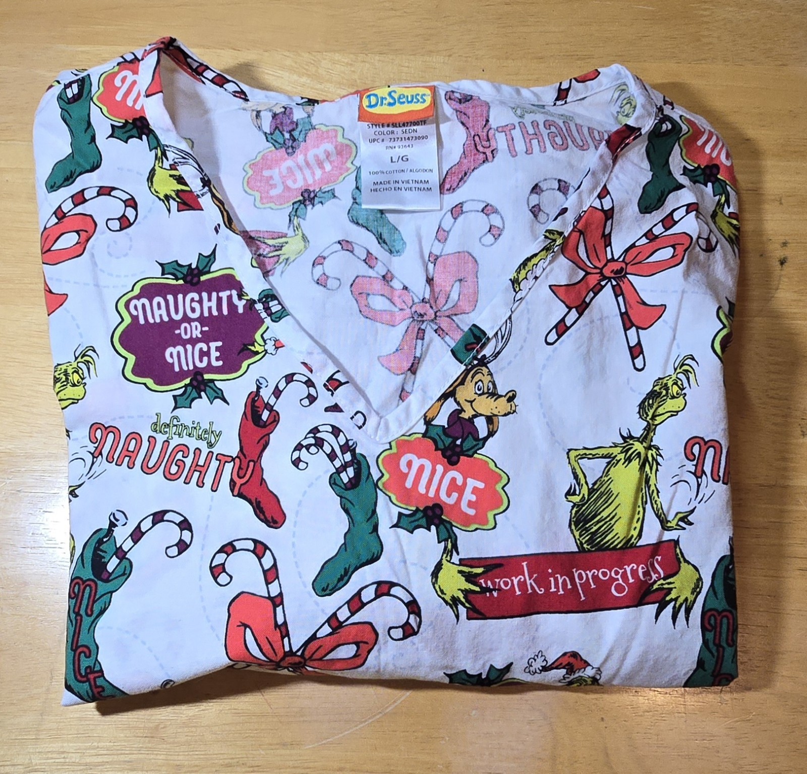 Dr. Seuss Naughty or nice Christmas Scrubs, LARGE, 5 ship,Each add. item 1 ship