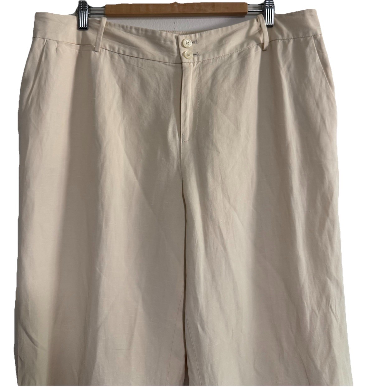 Ralph Lauren Women's Linen-Blend Pants Size 16W Ivory Beige Excellent