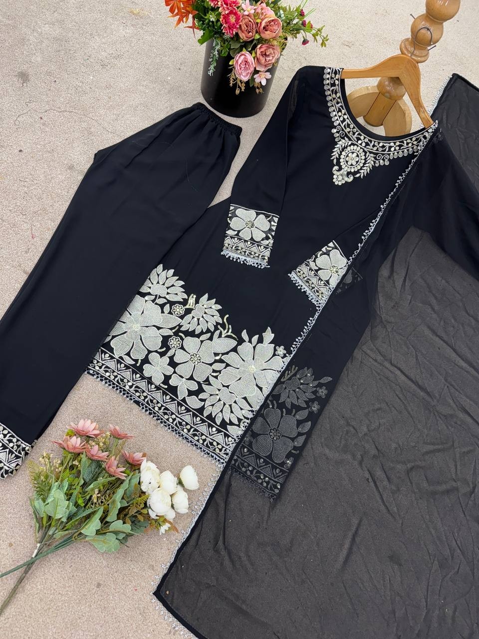 как выглядит Elegant Look Black Faux Georgette Salwar Kameez With Dupatta For Reception фото