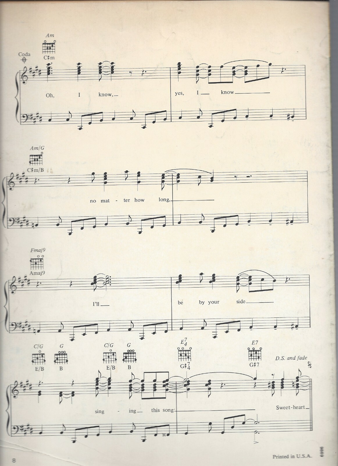 как выглядит piano sheet music "Sweethearts" recorded by The Knockouts 1981 фото