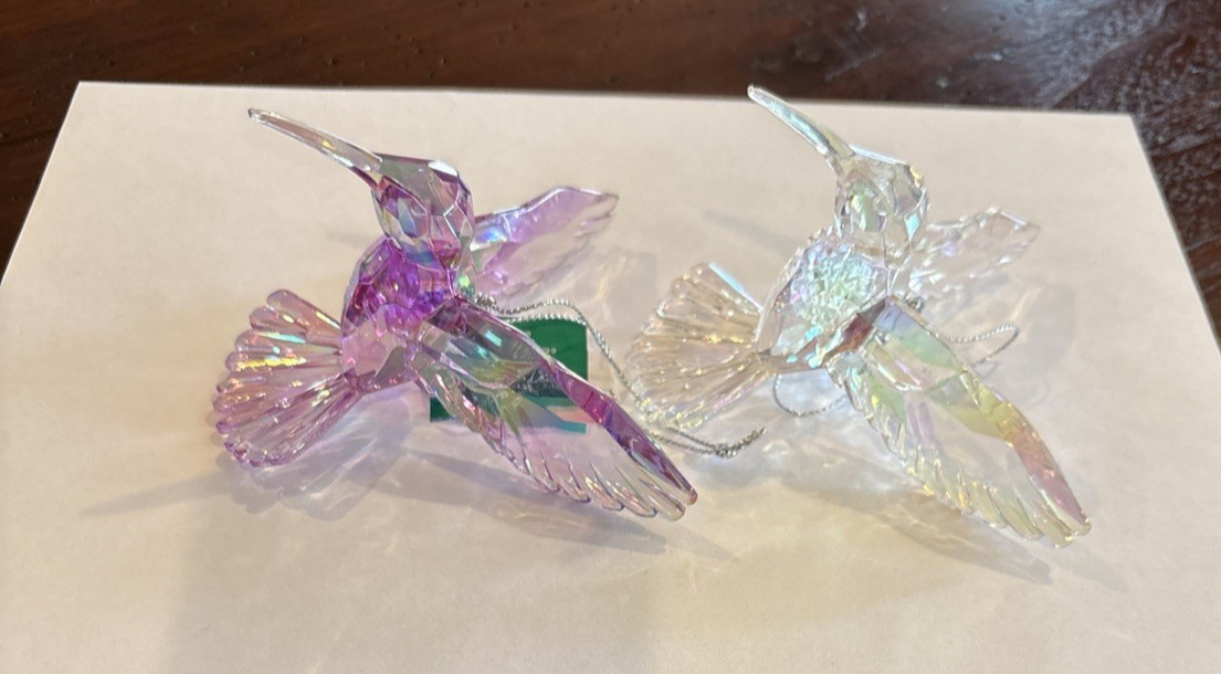 • KURT ADLER Set Of 2 Acrylic Faceted IRIDESCENT HUMMINGBIRD XMAS Ornaments NWT