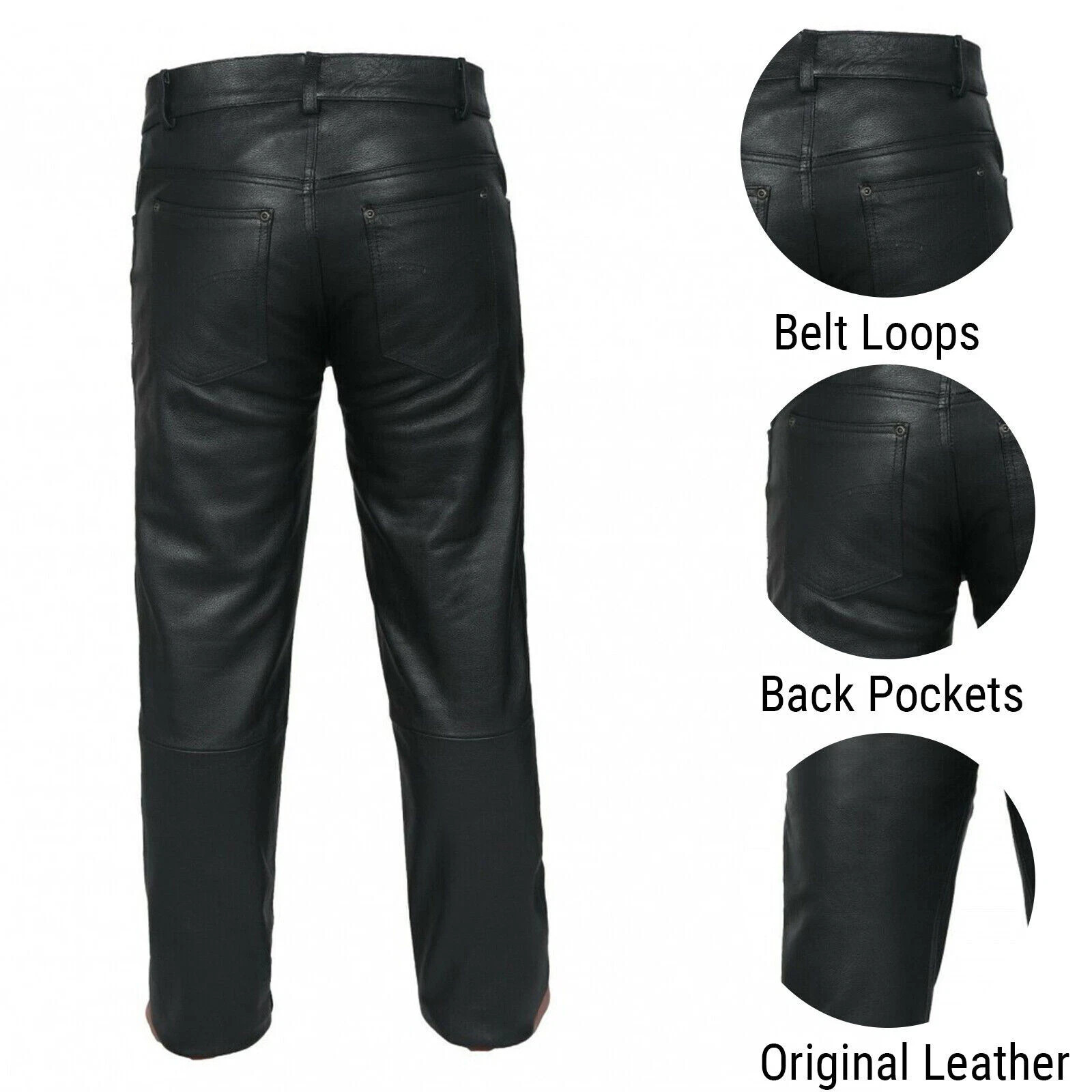 Men's Motorbike Cowhide Leather Pant 5 Pockets Black Leather Pant 28 - 38''