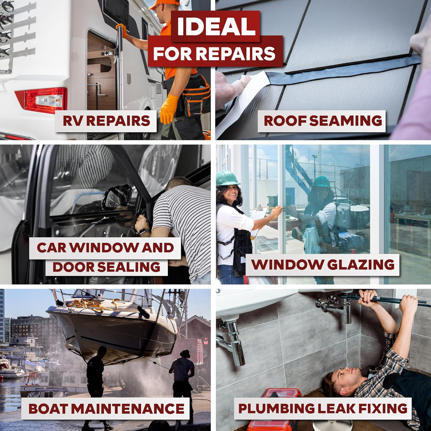 Butyl Sealing Tape, Black, 1/8-In X 3/4-In X 30-Foot Plumbers Putty, RV Sealant,