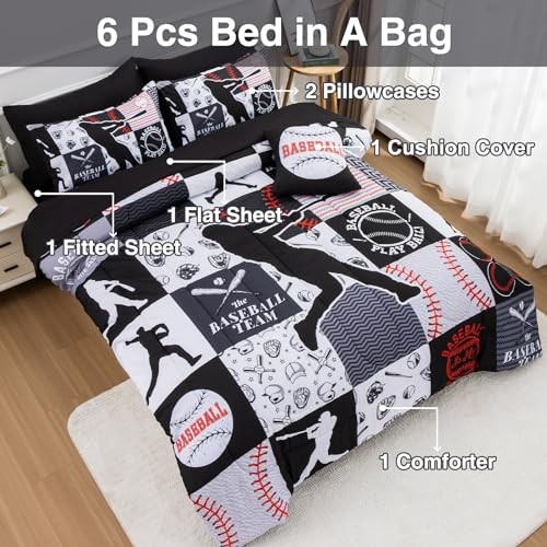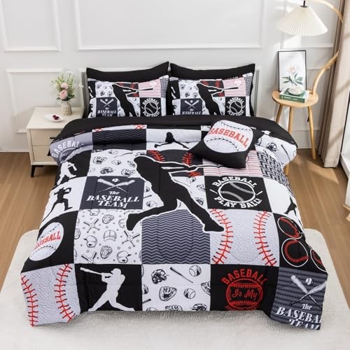 Sports Geometric Grid Patchwork Baseball Printed for Boys Queen-6PCS Black