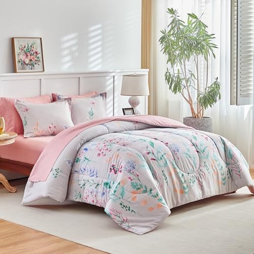 7-Piece Comforter Set Bed in a Bag, Queen Size, Floral Queen-7 Pieces Purple