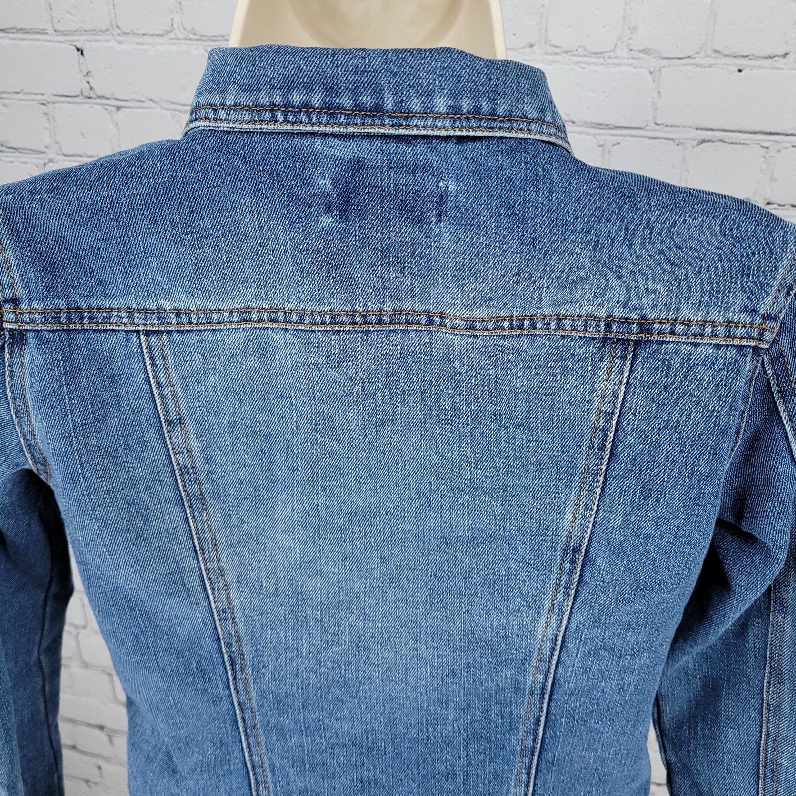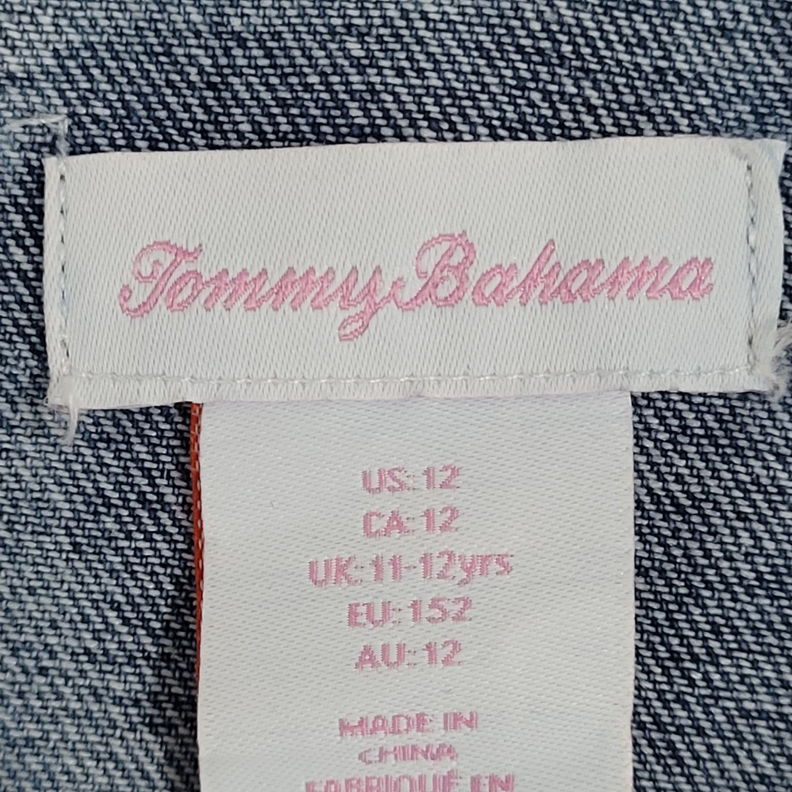 как выглядит Tommy Bahama Blue Denim Distressed Pockets Buttoned Jean Jacket Girls Size 11-12 фото