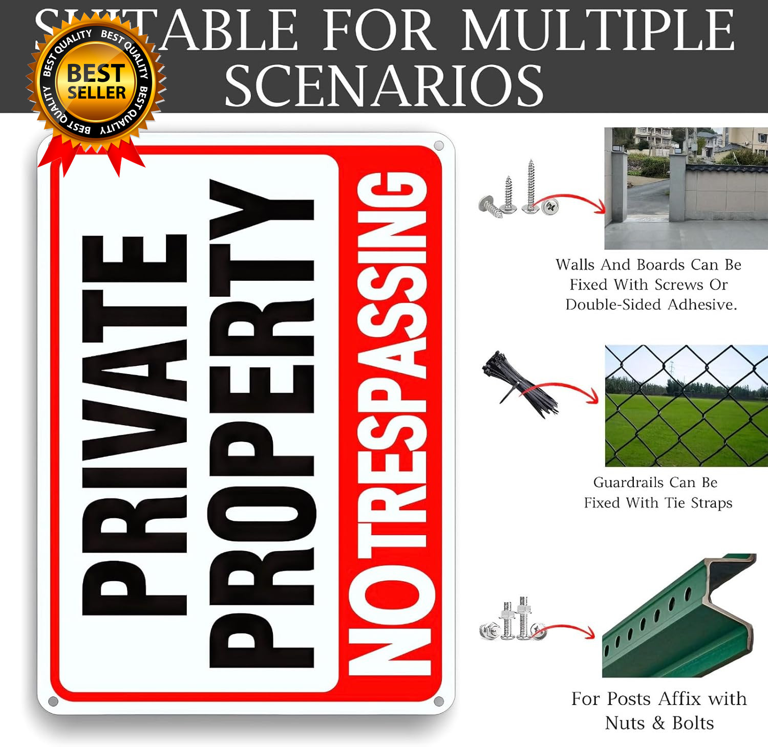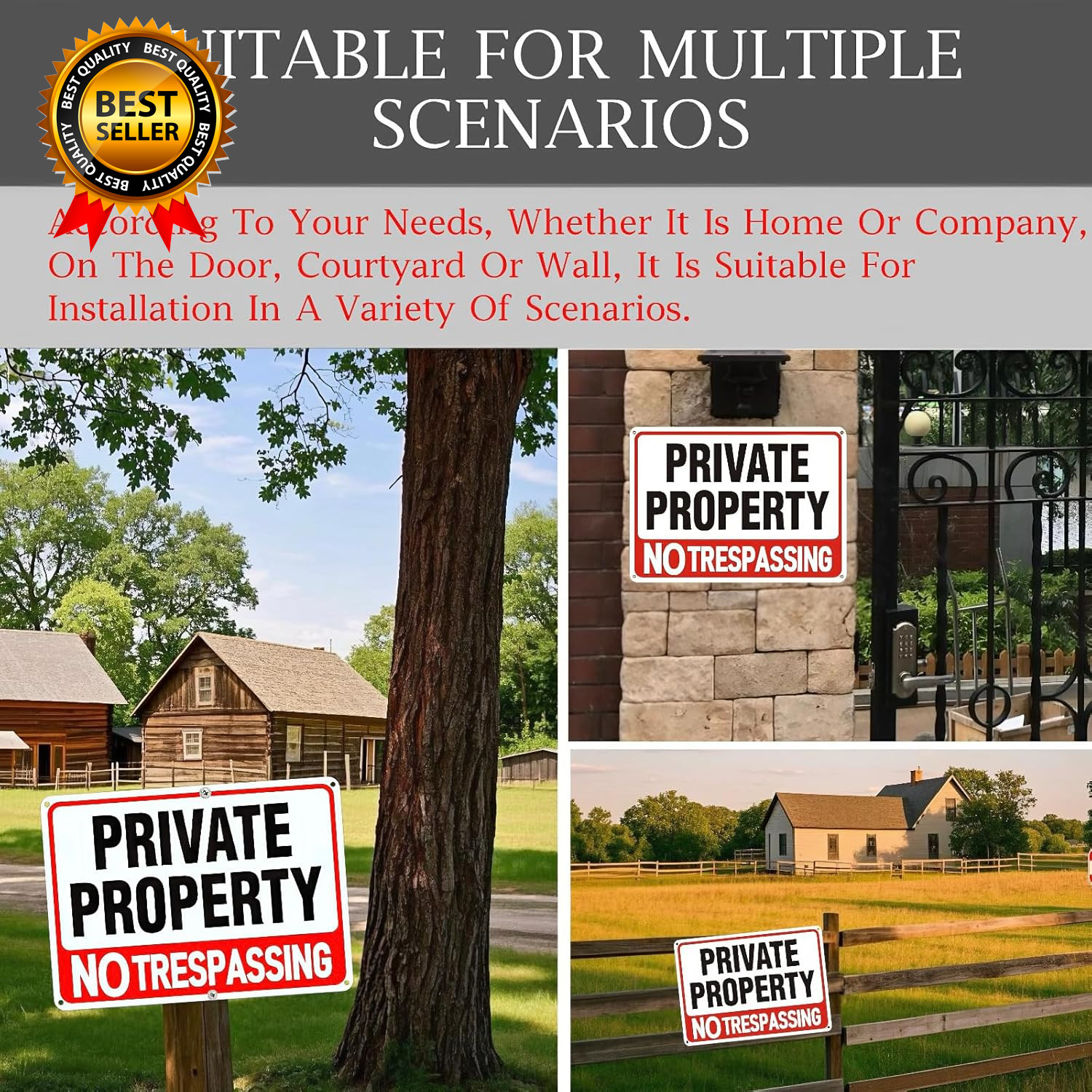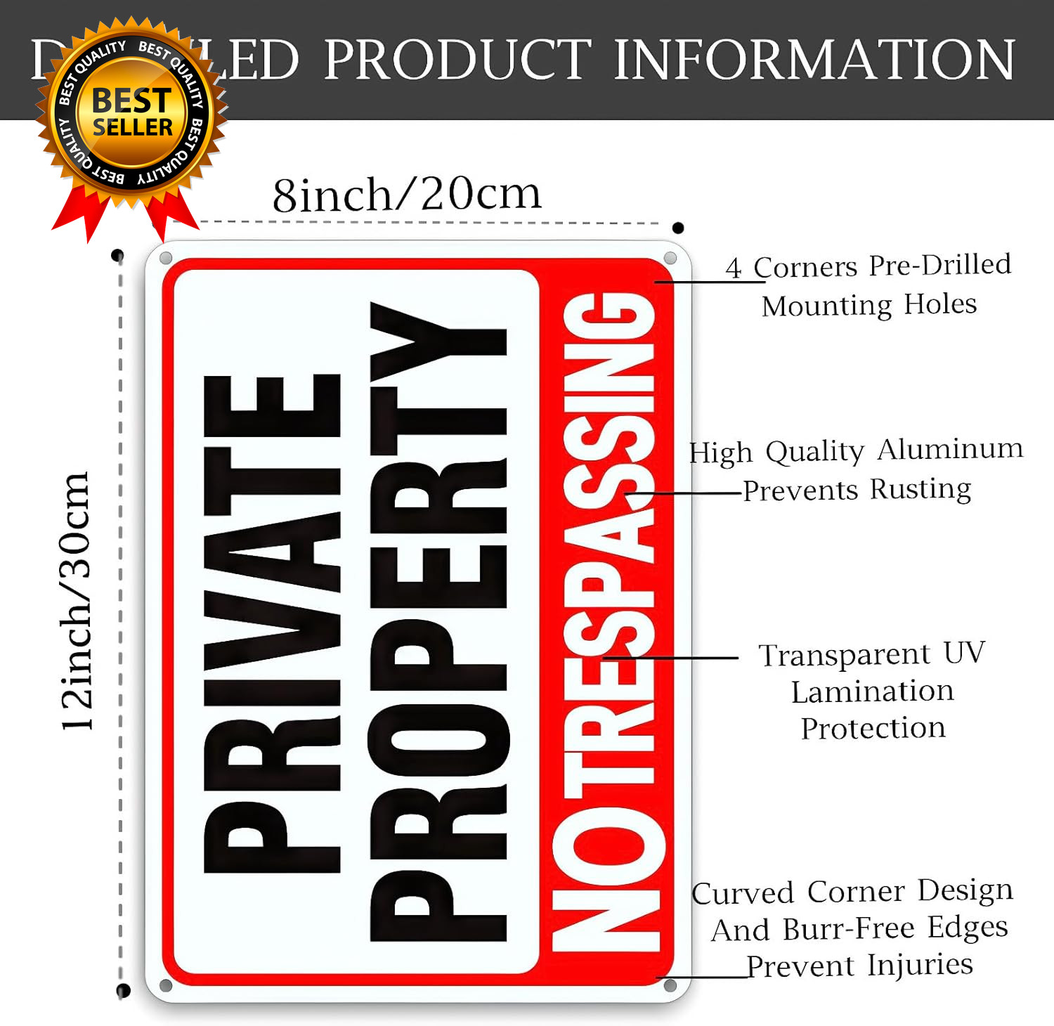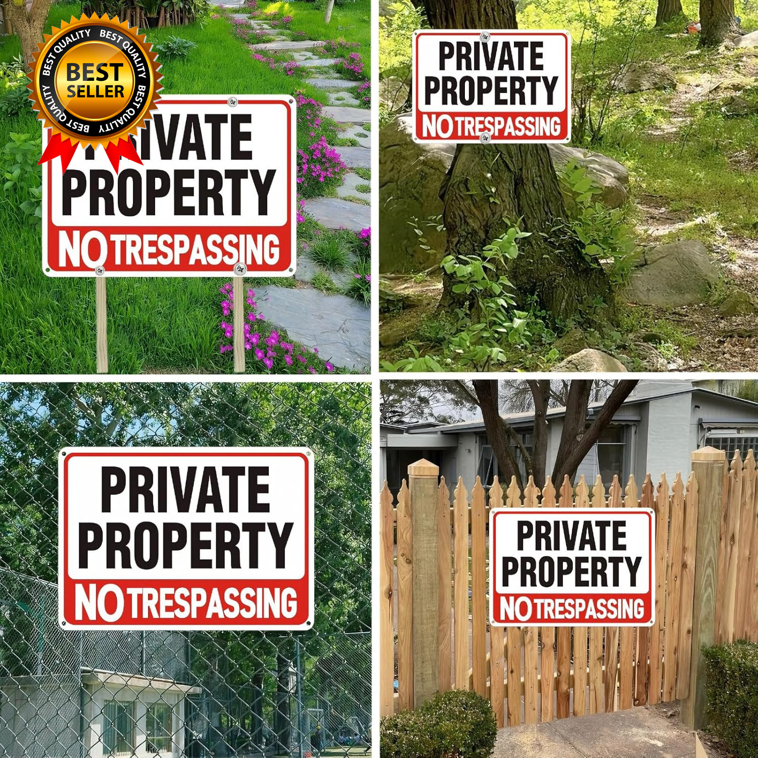 4 Pack Large No Trespassing Signs Private Property 8X12 Inch Rust Free Aluminum
