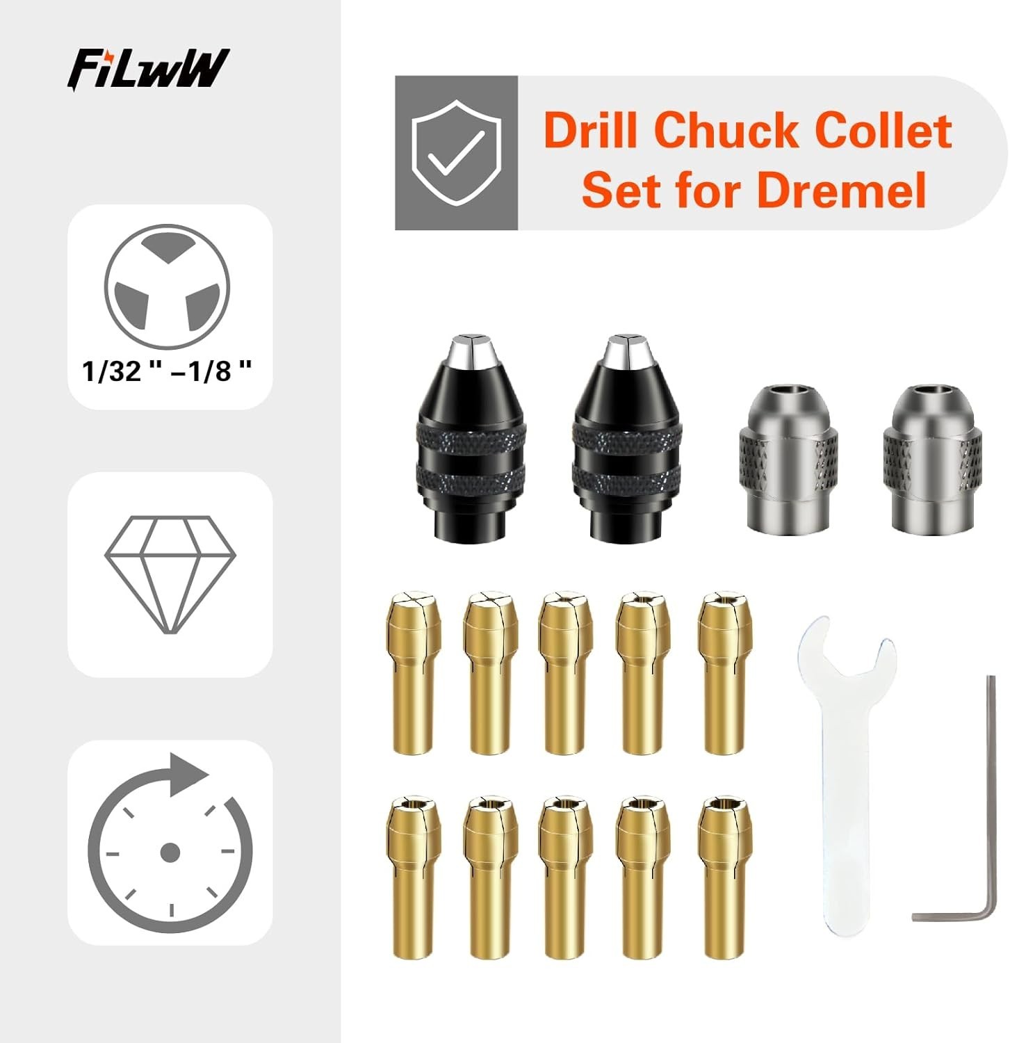Drill Chuck Collet Set for Dremel, 16PCS 0.8-3.2mm Replacement 4486 Drill Keyles