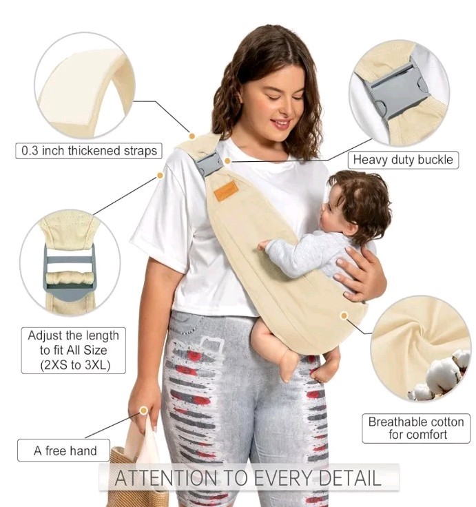 Baby Sling Carrier Newborn to Toddler7-45lbs One Shoulder Adjustable Strap Beige