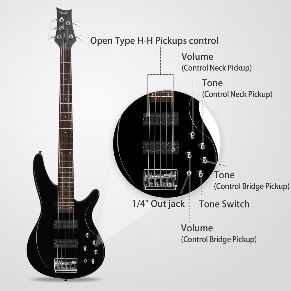 Glarry 44 Electric Bass Guitar 5 Strings Right Handed With Bag Beginner Kit