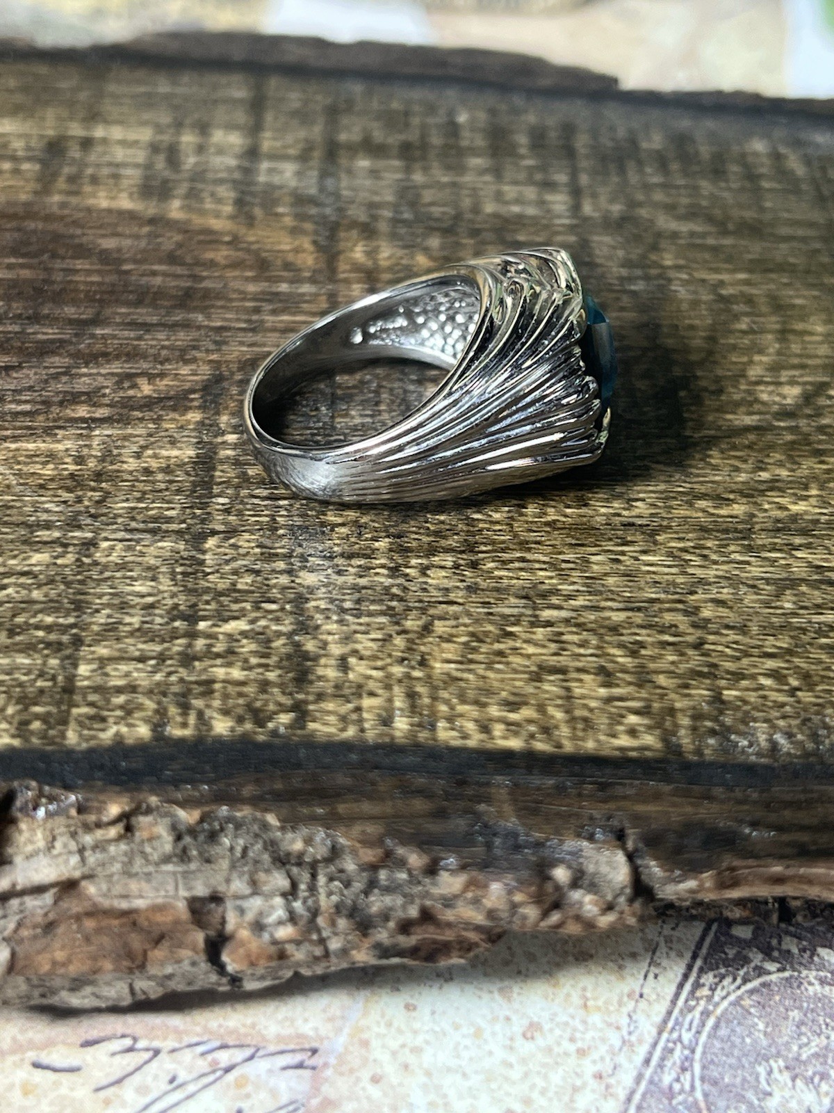 как выглядит Sterling Silver Blue Synthetic Spinel Ring Size 6 V845 фото