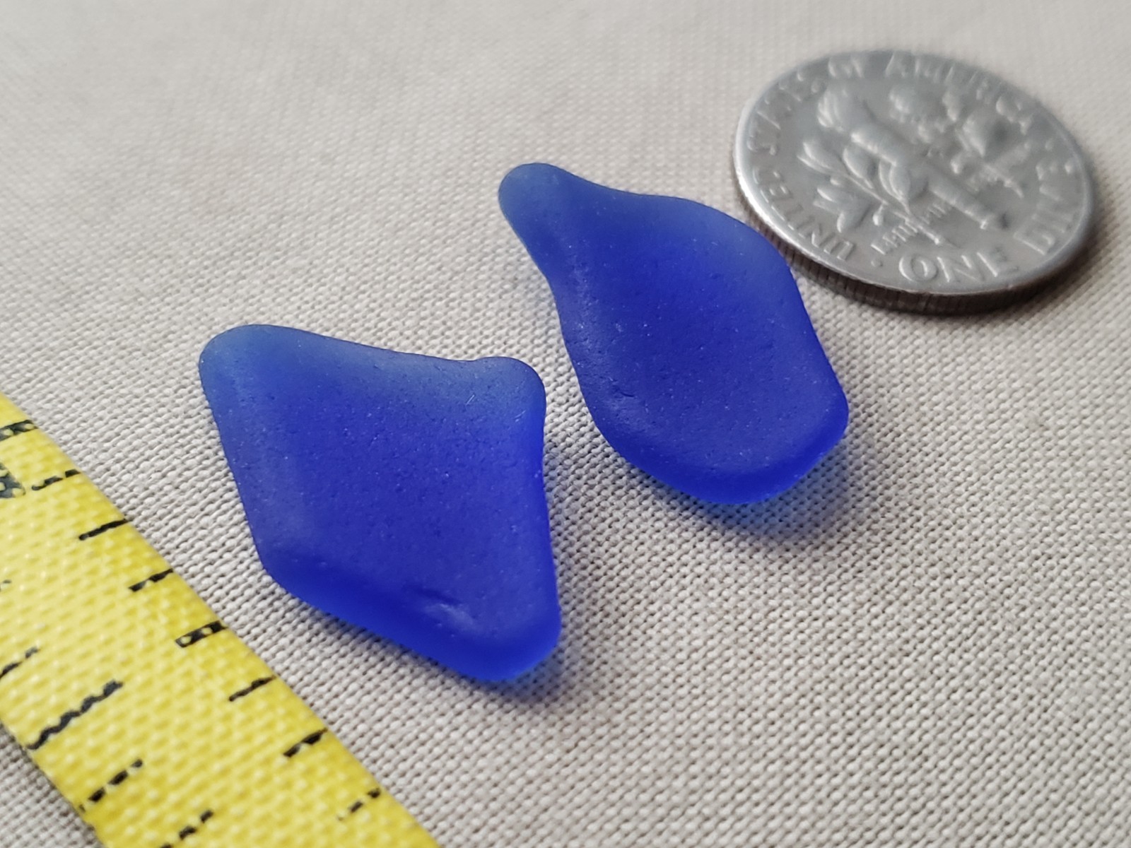 GENUINE PURE BEACH SEA GLASS SURF TUMBLED COBALT BLUE FROSTED OCEAN TWO SMALL V1