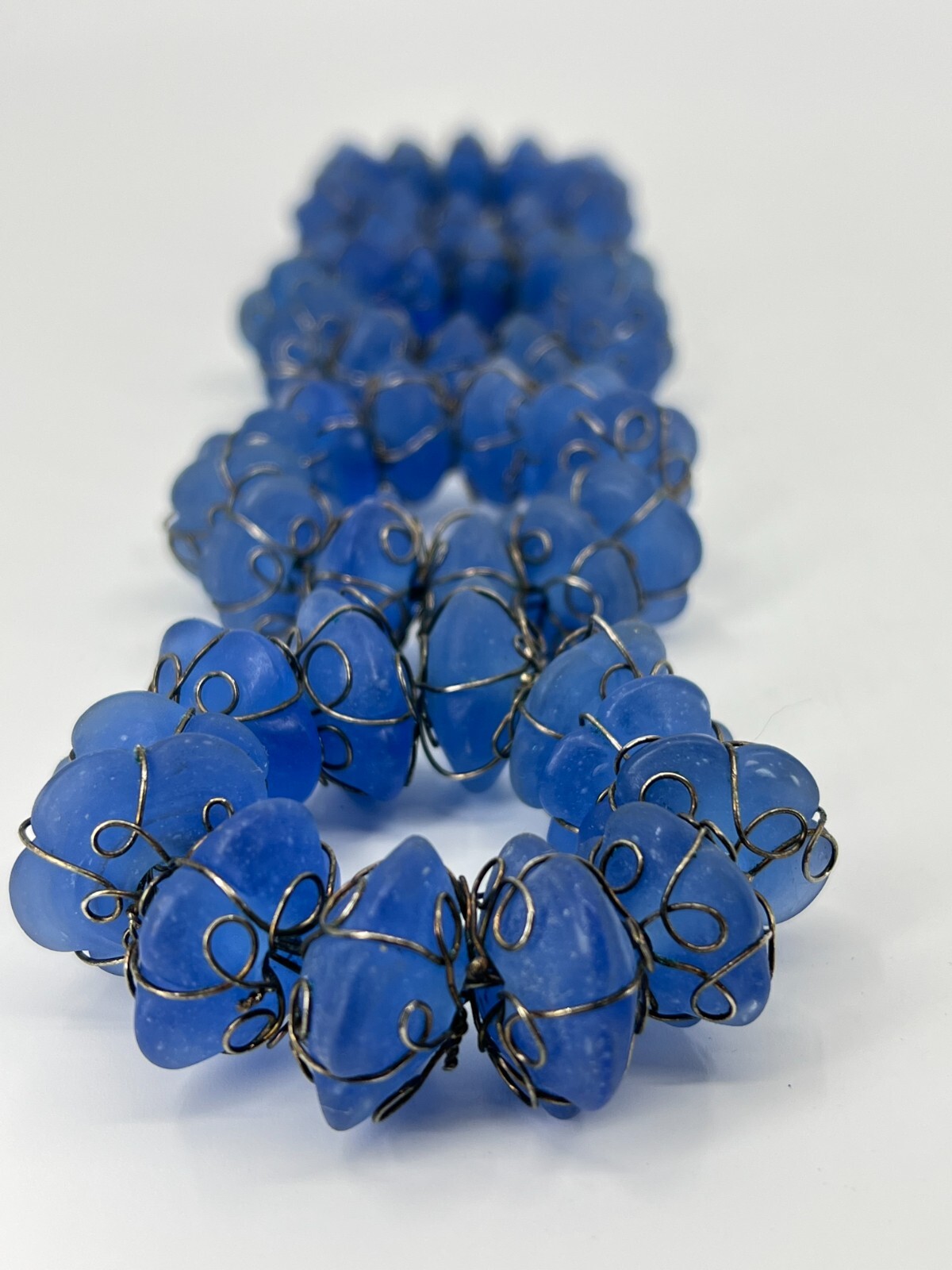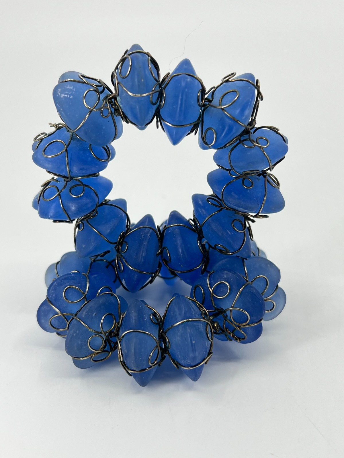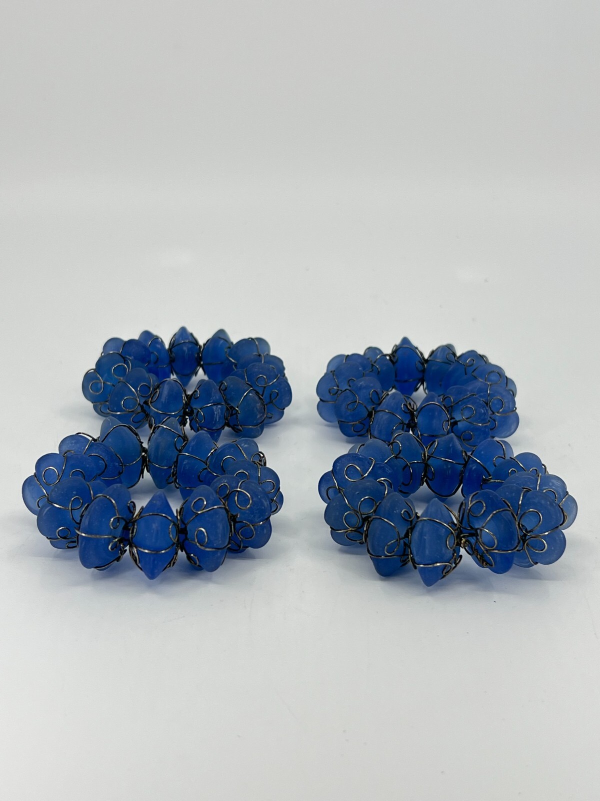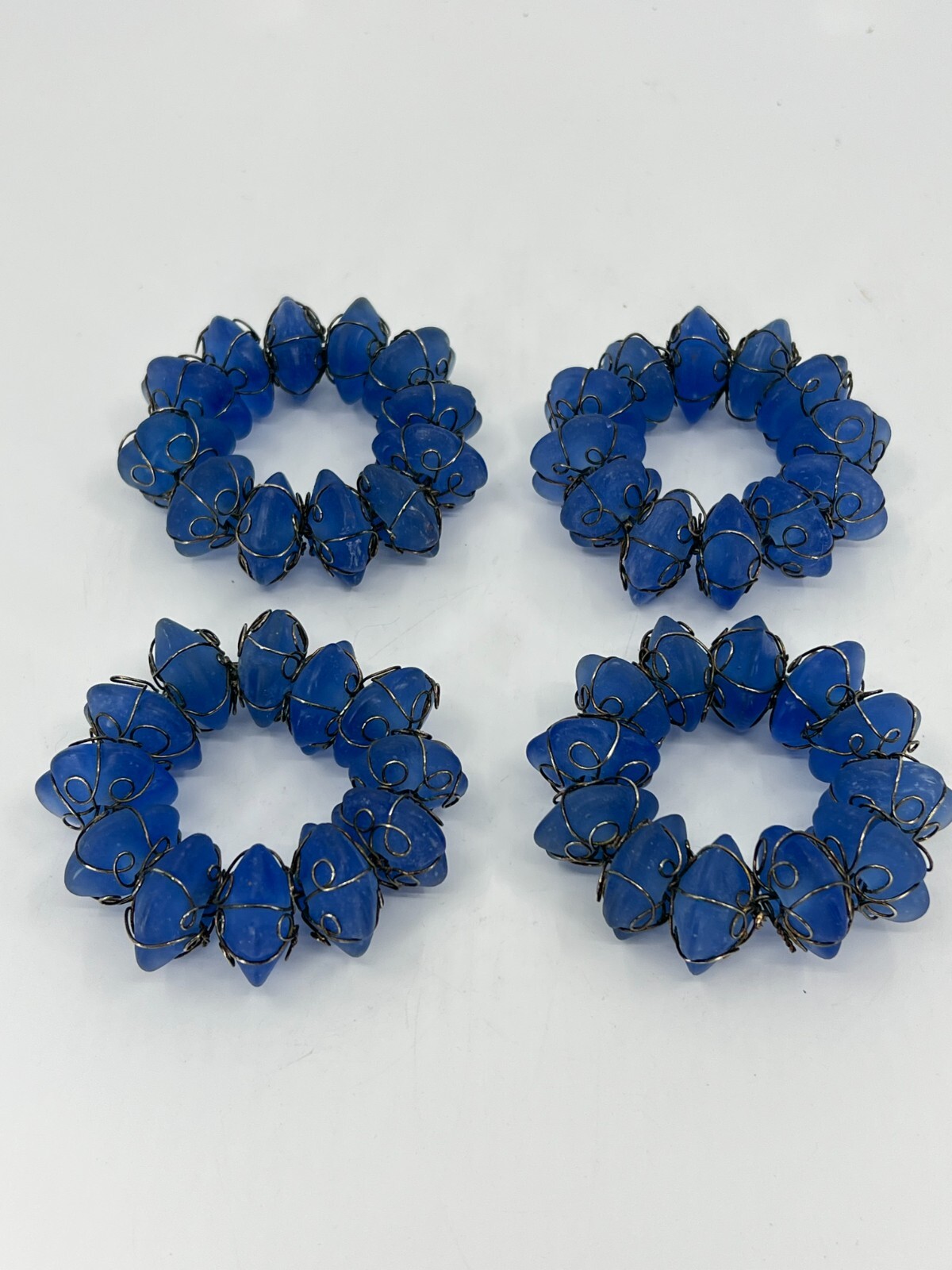 • Set of 4 Cobalt Blue Sea Glass Wire Wrapped NAPKIN RINGS Beach House Theme Ocean