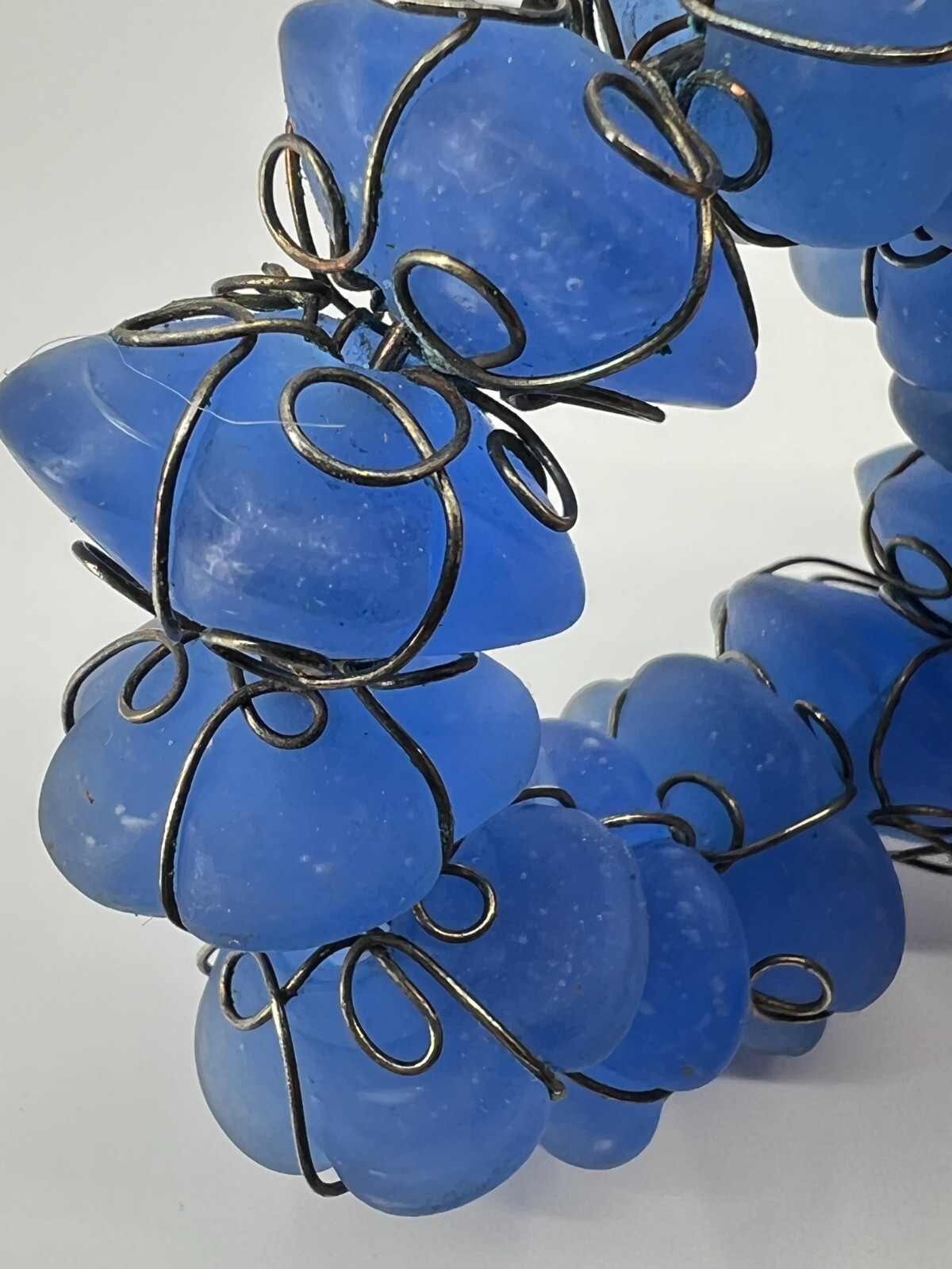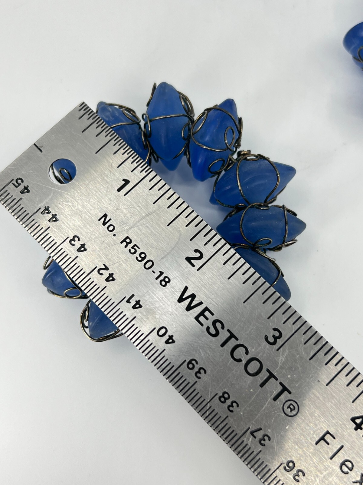 Set of 4 Cobalt Blue Sea Glass Wire Wrapped NAPKIN RINGS Beach House Theme Ocean