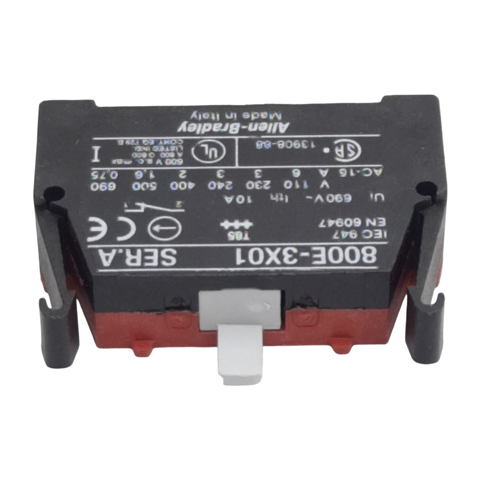 Lot of 2 Allen Bradley 800E-3X01 Pushbutton Contact Block, 1NC, 10A 600VAC, 22mm