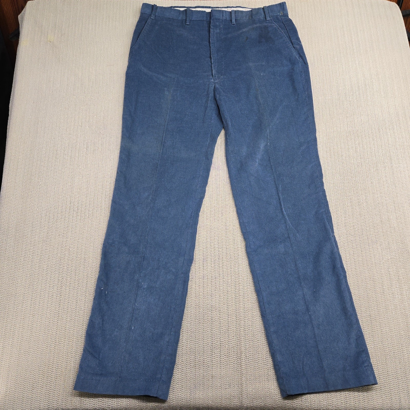 Vintage Corduroy Pants Mens 38Lx34 Blue Flat Front Straight Leg Classic 80s