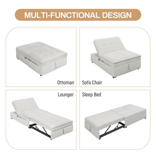 4 in 1 Convertible Sleeper Sofa Bed Velvet Tufted Upholstered Single Recliner