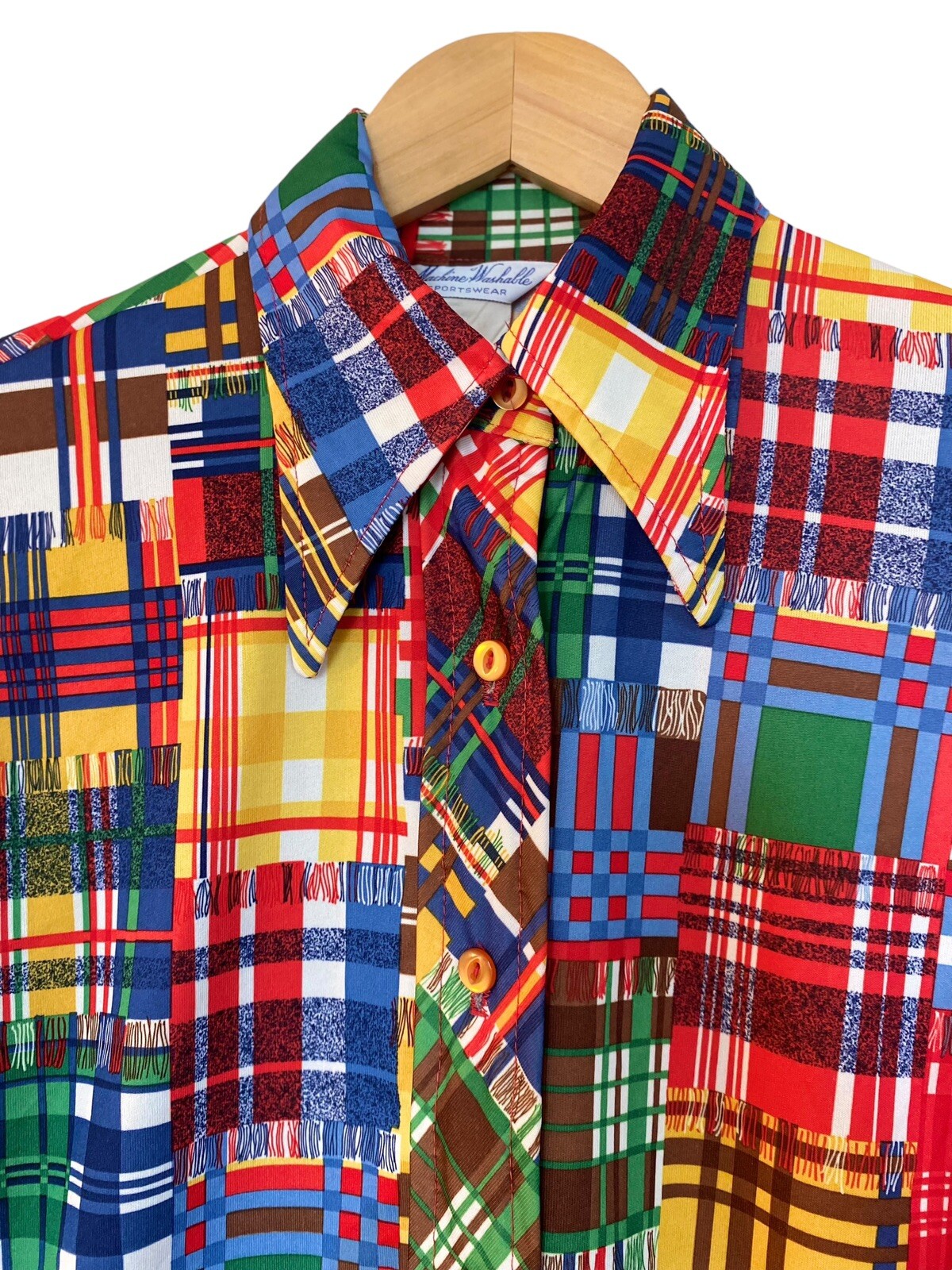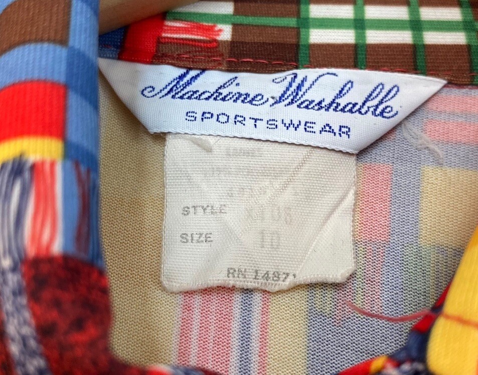 Vintage 70's Multicolored Dagger Collar Button Up Shirt Size Small